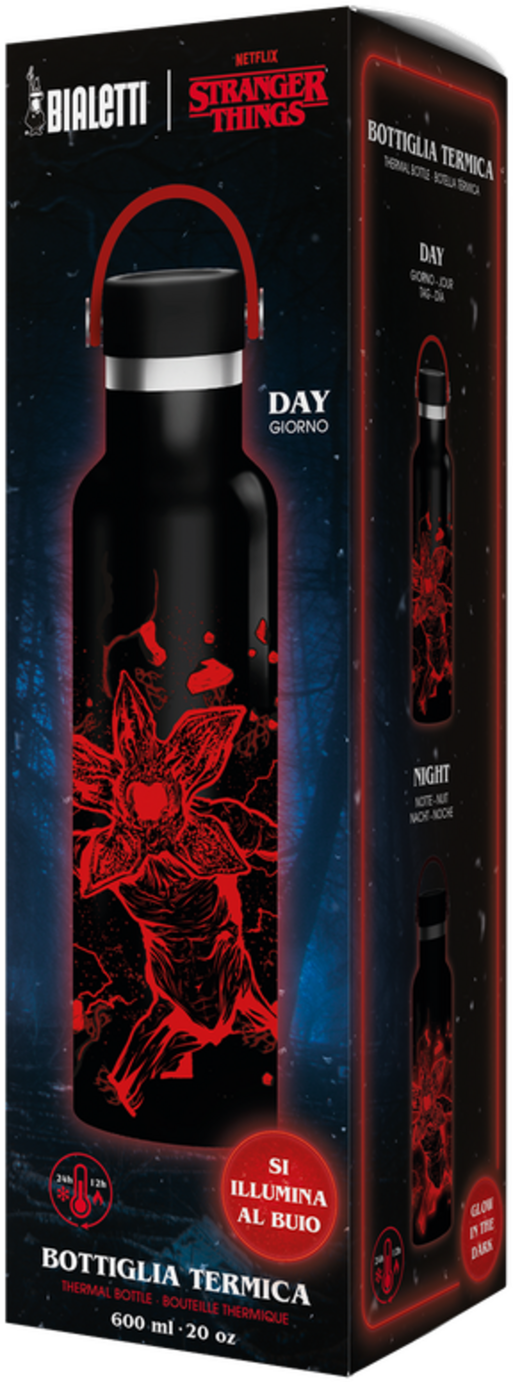 Exklusives Design trifft hochwertige Material- & Verarbeitungsqualität. Detailreich gezeichnete 3D-Grafiken im "Stranger Things"-Look machen die aus doppelwandigem Edelstahl gefertigte Thermosflasche nicht nur optisch zum absoluten Highlight.