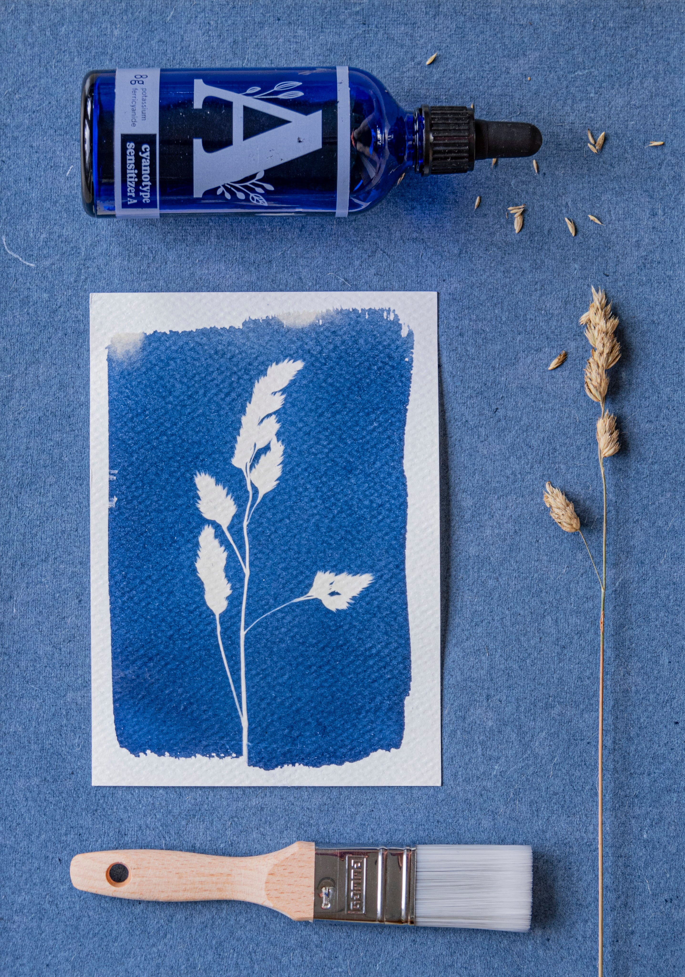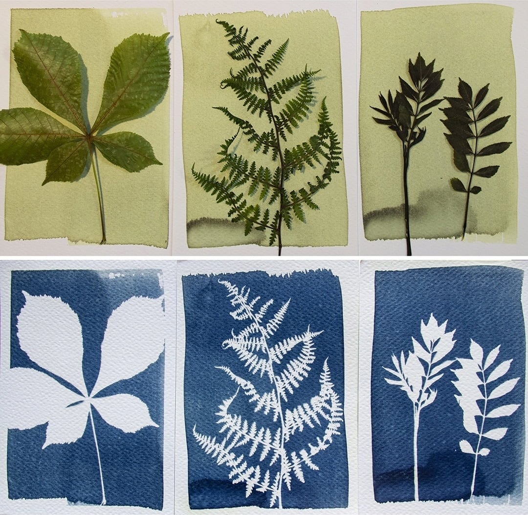 Bei Cyanotypie handelt es sich um eine 1842 entdeckte fotografische Drucktechnik, bei der mit Hilfe von Sonnenlicht ein cyanblauer Druck entsteht. Damals wurde das Verfahren eingesetzt, um erschwingliche Kopien technischer Zeichnungen anzufertigen, heute kannst du damit einzigartige kleine Kunstwerke schaffen.