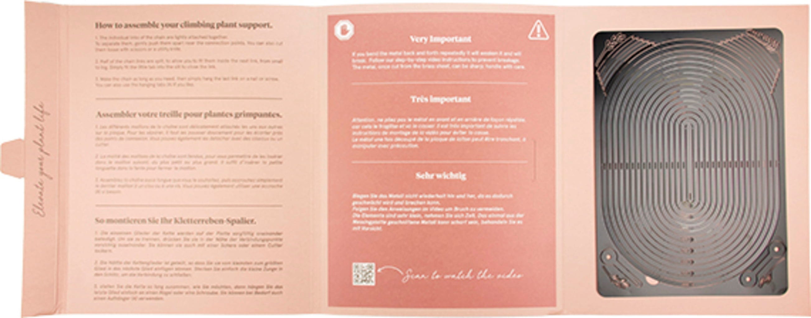 Das modulare Design ermöglicht es dir, mehrere Rankhilfen bis zu einer Länge von 190 cm miteinander zu kombinieren. Befestigt wird die Pflanzenstütze einfach mithilfe eines Nagels an der Wand.