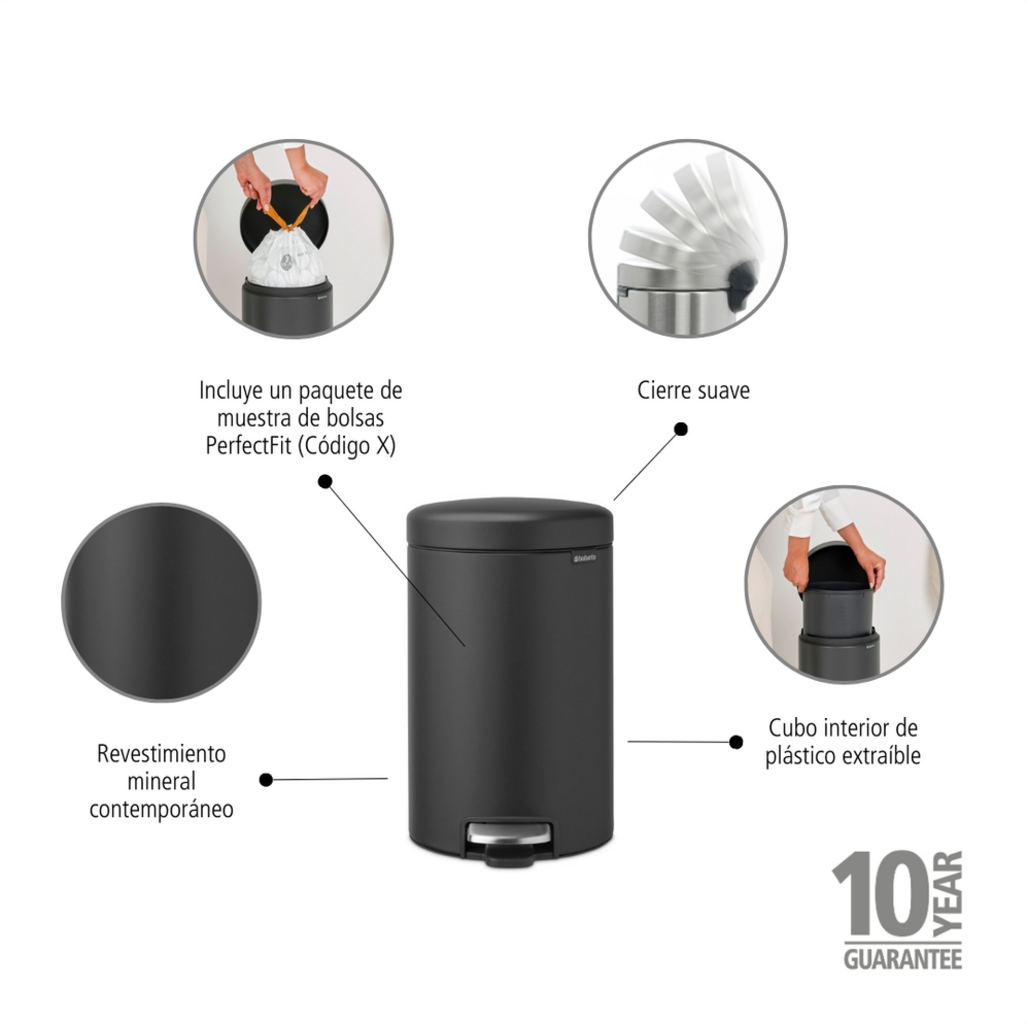 Brabantia Treteimer Newicon 12 L mit Kunststoffeinsatz, Mineral Infinite Grey