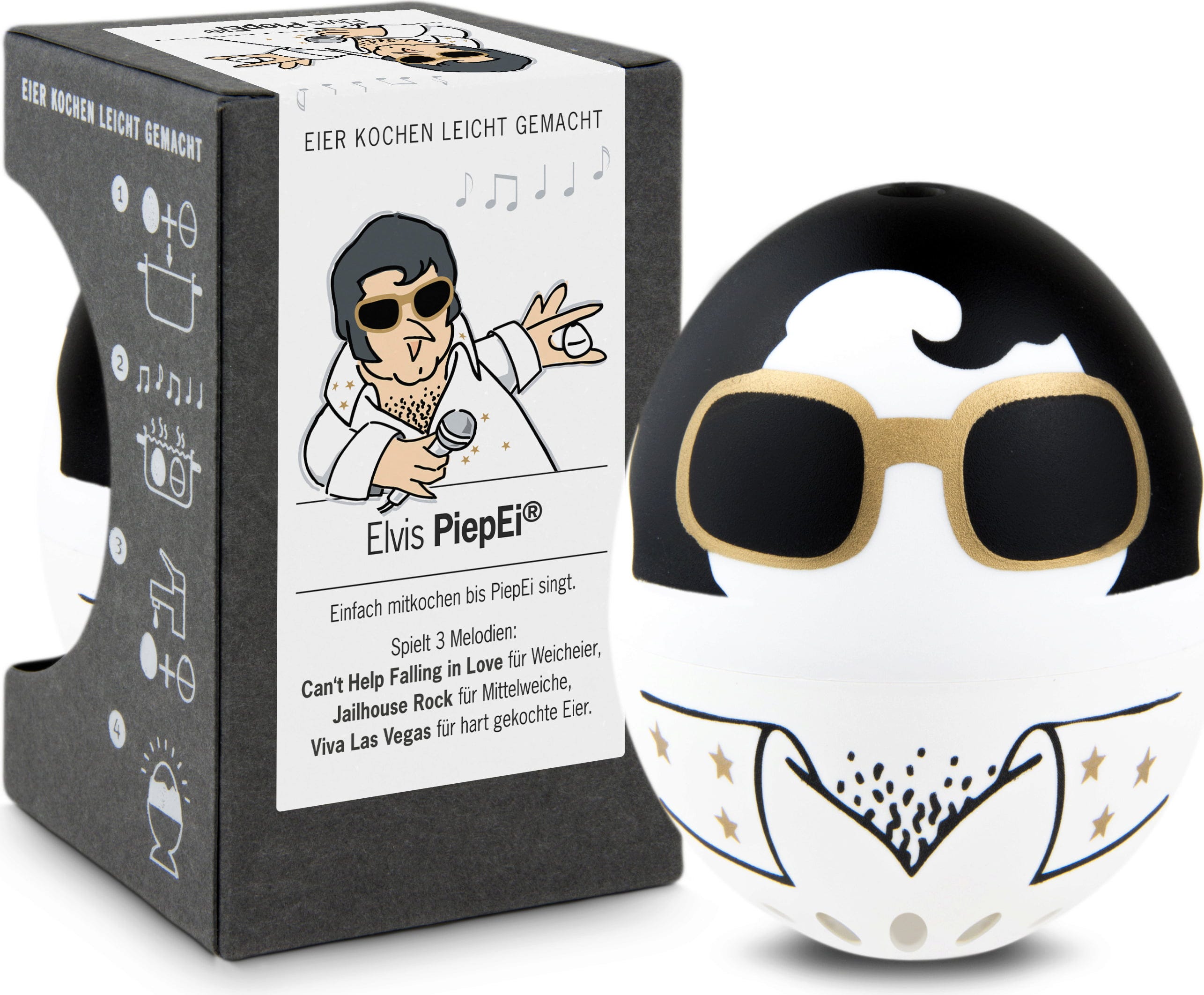 Mit seinem legendären Design bringt das Elvis-PiepEi den Glamour und den Rhythmus des King of Rock’n’Roll direkt in den Kochtopf.
