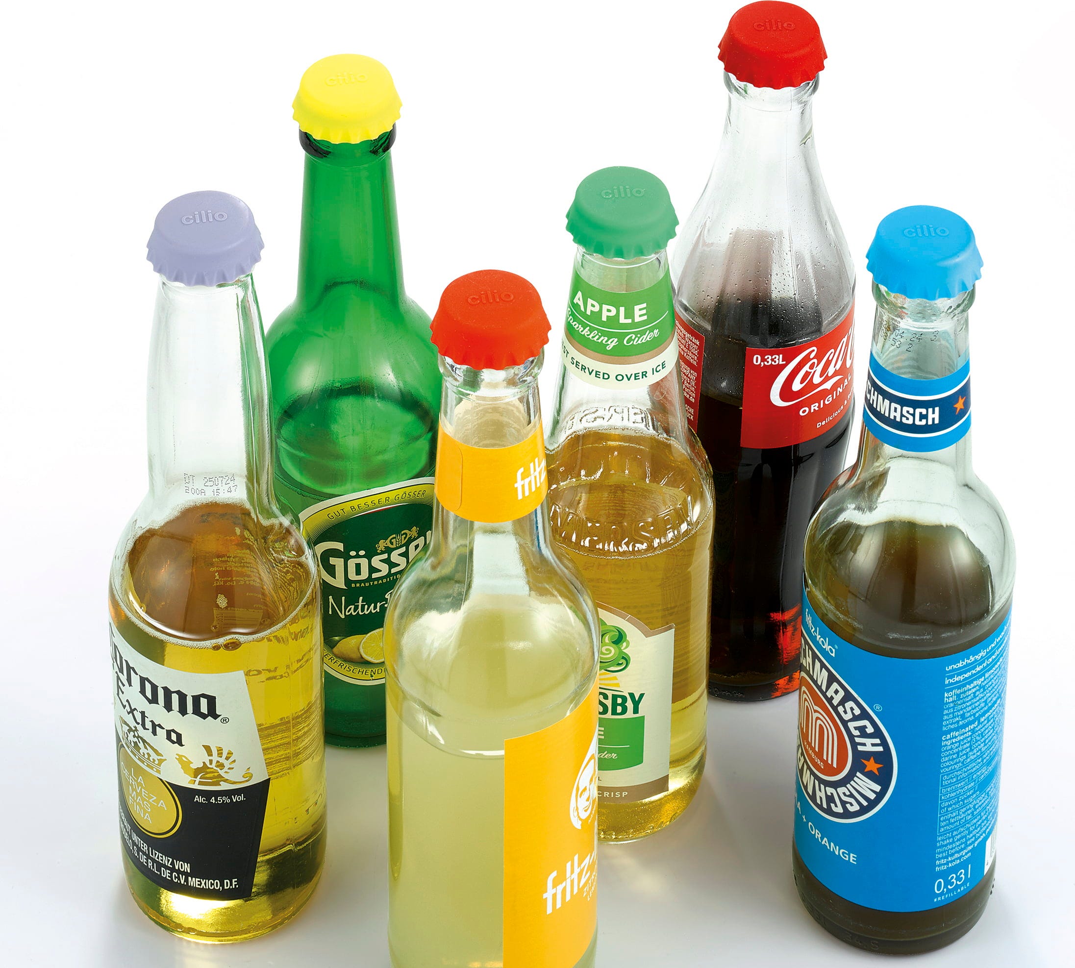 Das 12-teilige Set der cilio Kronkorken SALUTE ist der ideale Begleiter für Partys und Picknicks. Die elastischen Helfer aus lebensmittelechtem Silikon passen sich allen Kronkorkenflaschen bis maximal Ø 3 cm perfekt an und schützen so vor Schmutz, Insekten sowie ungewollten Substanzen. Kohlensäurehaltige Getränke bleiben länger frisch und dank unterschiedlicher Farbdesigns besteht keine Verwechslungsgefahr.