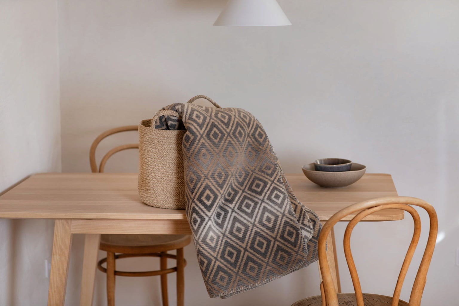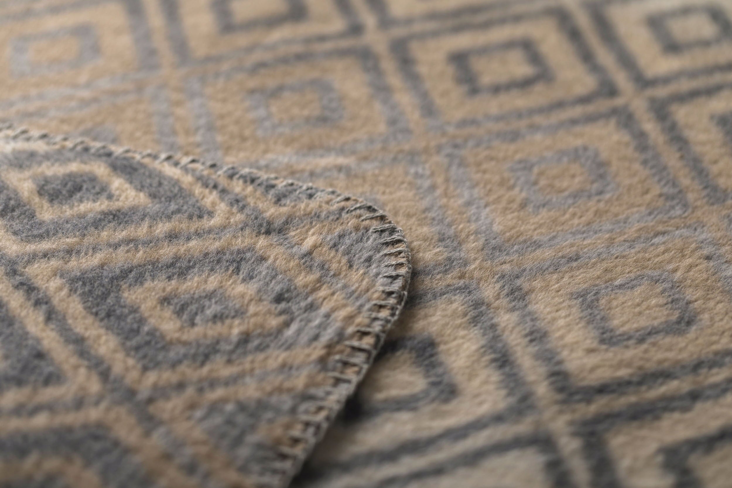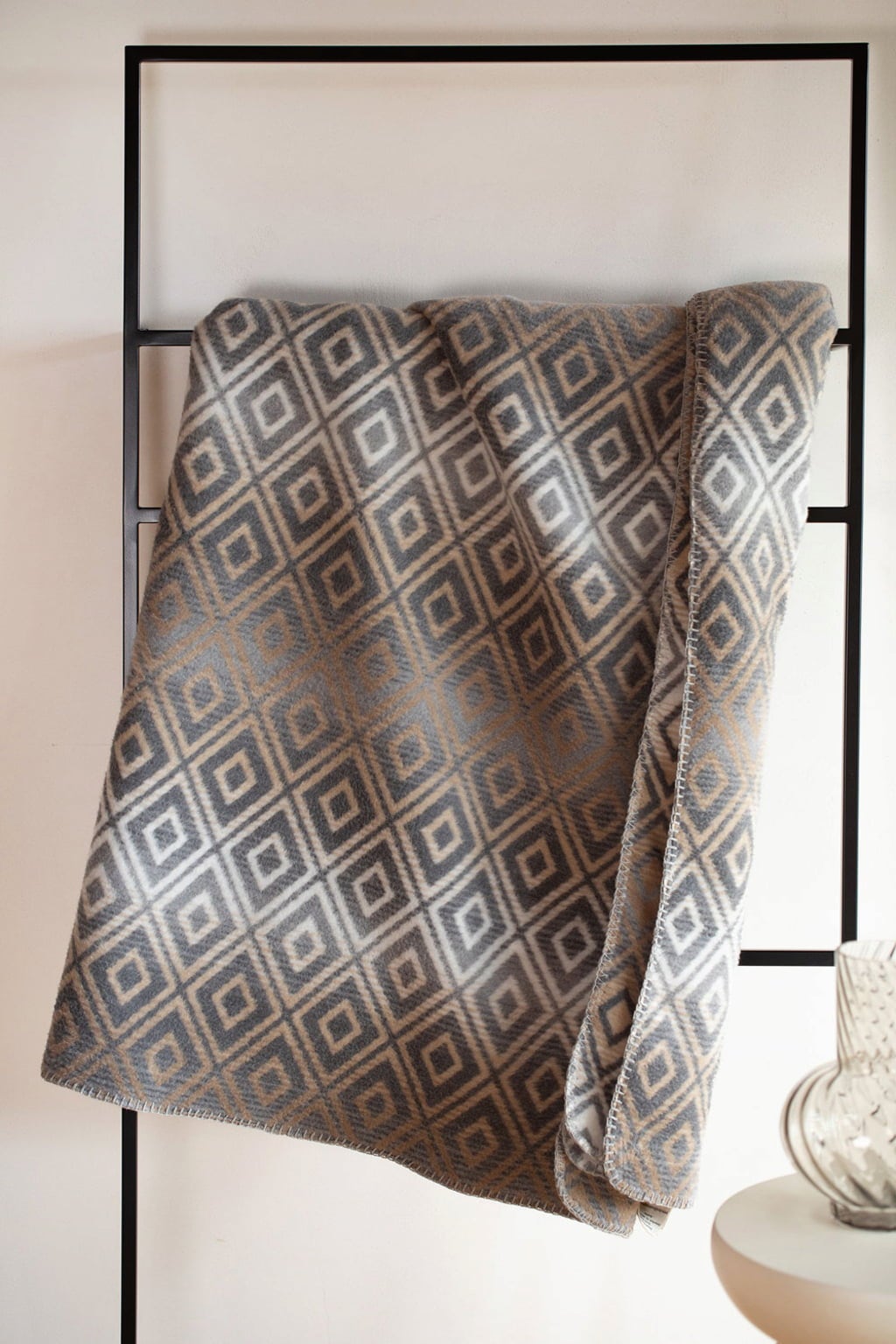 Nicht nur dank ihres Rautendesigns optisch ein Highlight, sondern auch im Hinblick auf hochwertige Material- und Verarbeitungsqualität, angenehmes Hautgefühl und weiche Griffigkeit. So wird die Wohndecke "Raute Verlauf" zum tollen Kombipartner in jedem Wohnzimmer.