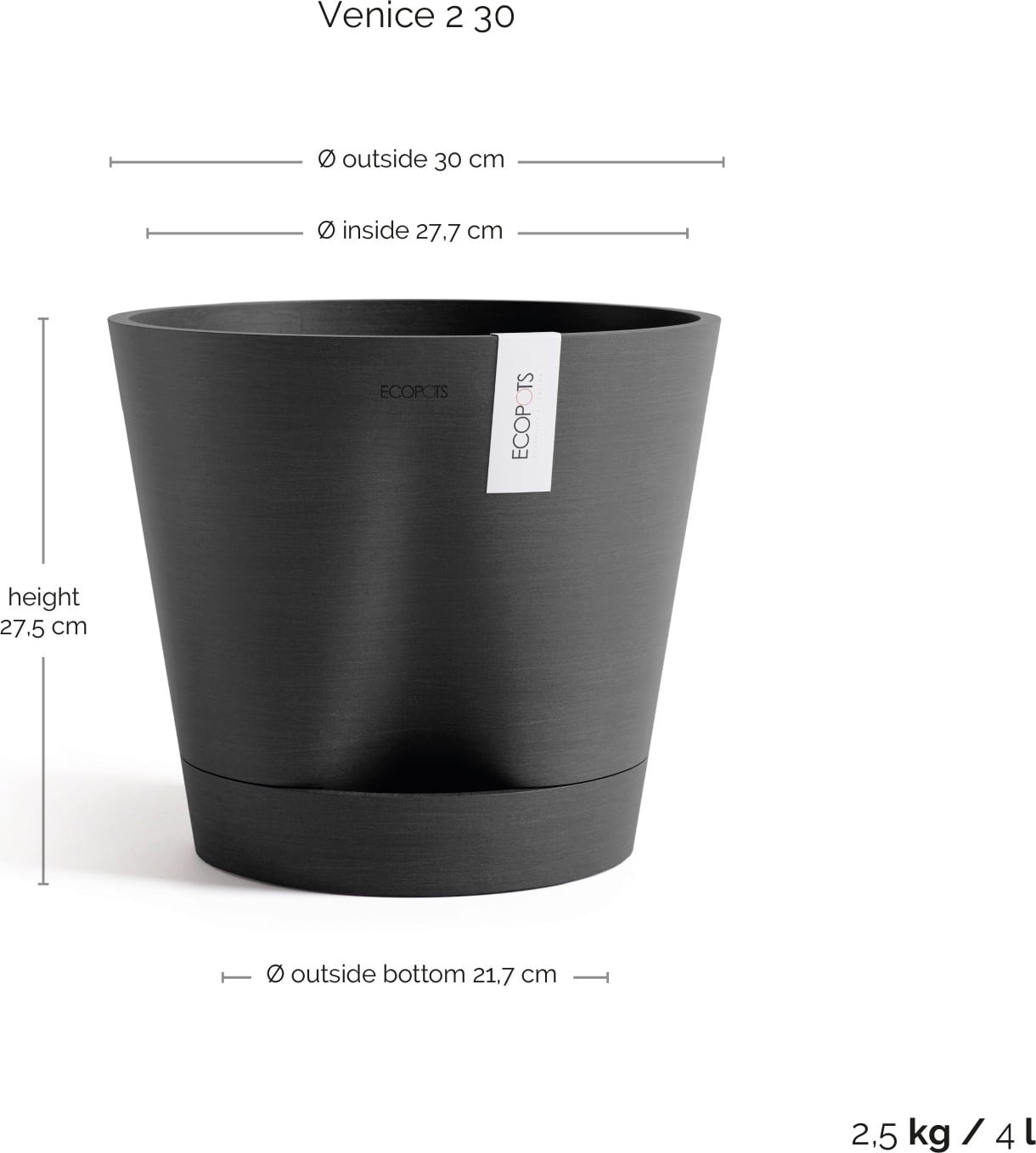 Ecopots Venice 2 Pflanztopf dunkelgrau, Ø 30 cm, Höhe 27,5 cm