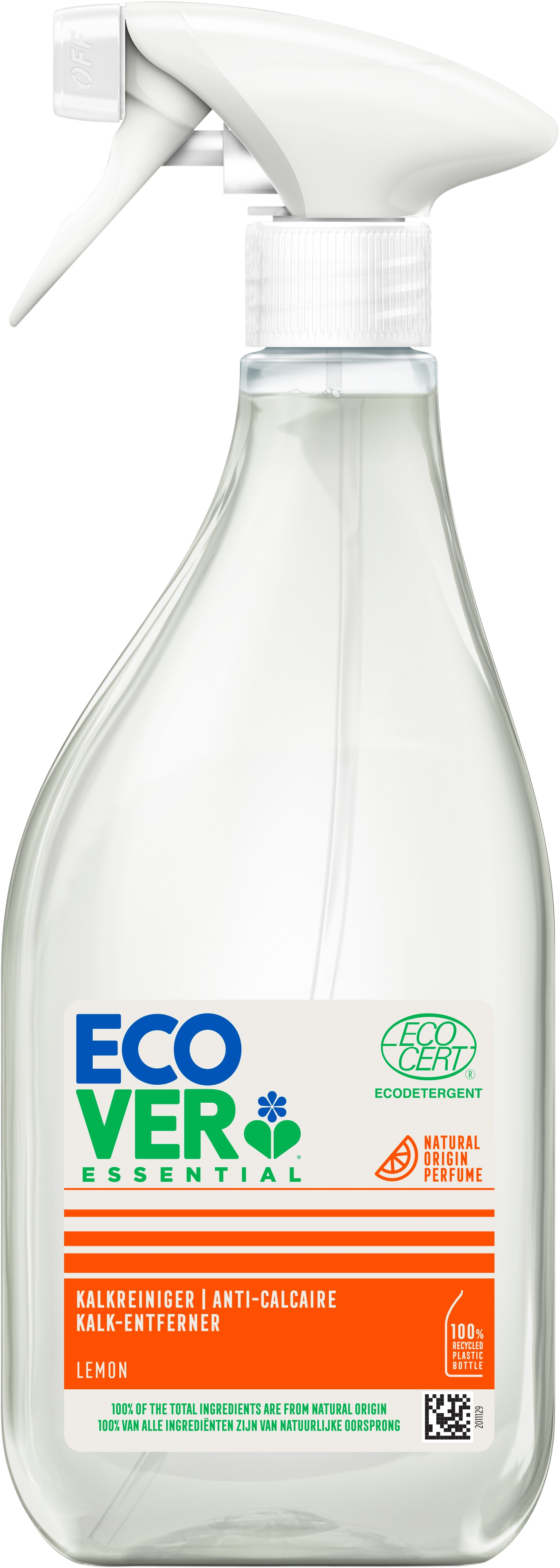 Der Kalk-Entferner der Produktlinie Essential von Ecover entfernt Kalkablagerungen auf Basis von pflanzlichen und mineralischen Inhaltsstoffen. 100 % der gesamten Inhaltsstoffe sind natürlichen Ursprungs.