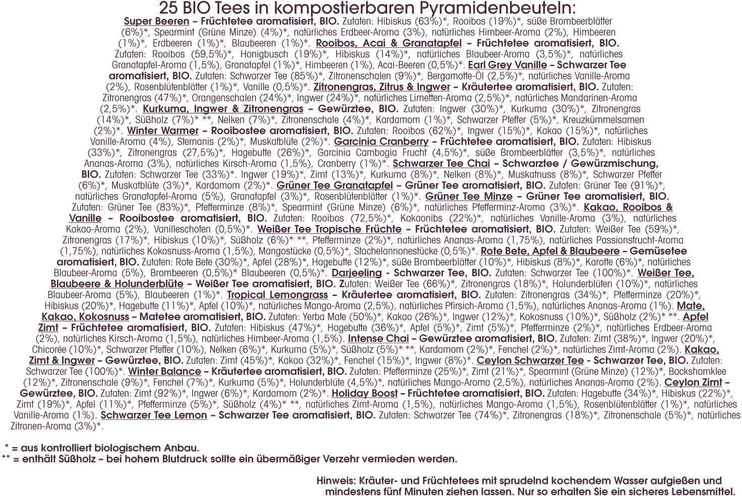 Achtung: Einige Tees enthalten Süßholz oder Koffein.