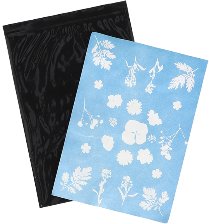 Mit diesem Solarpapier kannst du ganz besondere Kunstwerke gestalten - und das nur mit der Kraft der Sonne! Das Papier reagiert nämlich auf UV-Strahlung und lässt so wundervolle Motive entstehen. Suche einfach etwas Schönes wie Blätter, Blüten oder Federn und lege es auf das Papier. nach rund 10 Minuten in der Sonne kannst du die Objekte wieder entfernen. Spüle das Papier nun noch 2 Minuten lang unter fließendem Wasser ab, um das Motiv zu entwickeln und zu fixieren. Hänge es dann zum Trocknen auf und freue dich über ein ganz besonderes Kunstwerk.
