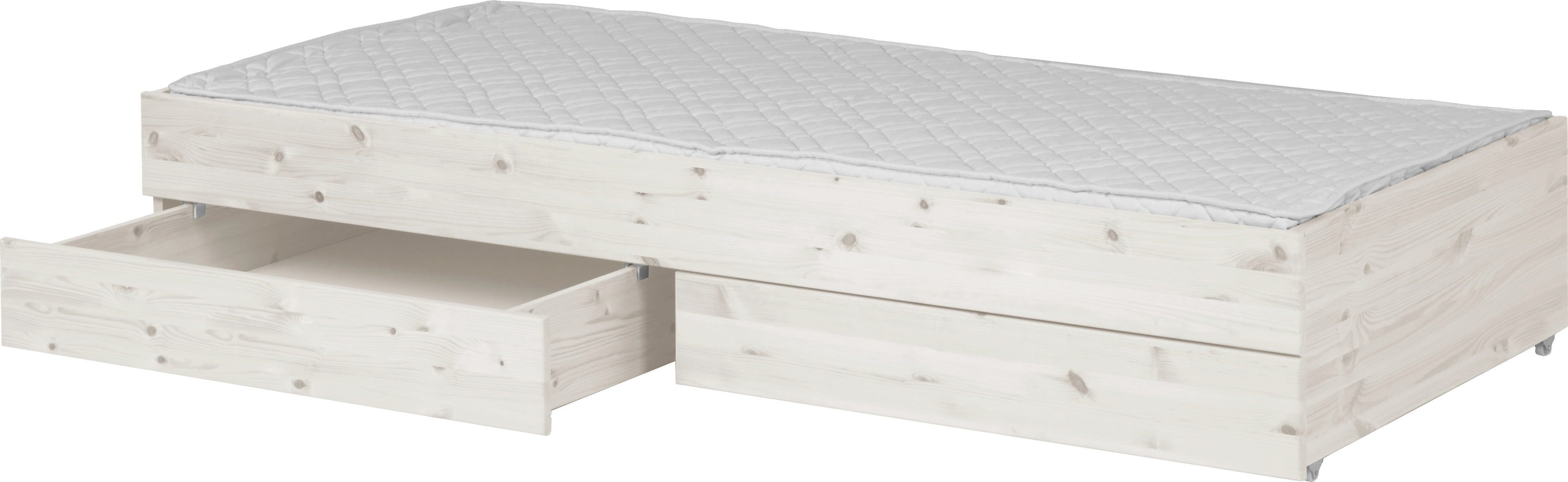 Flexa CLASSIC Ausziehbett mit 2 Schubladen, 90x190 cm, Weiß lasiert