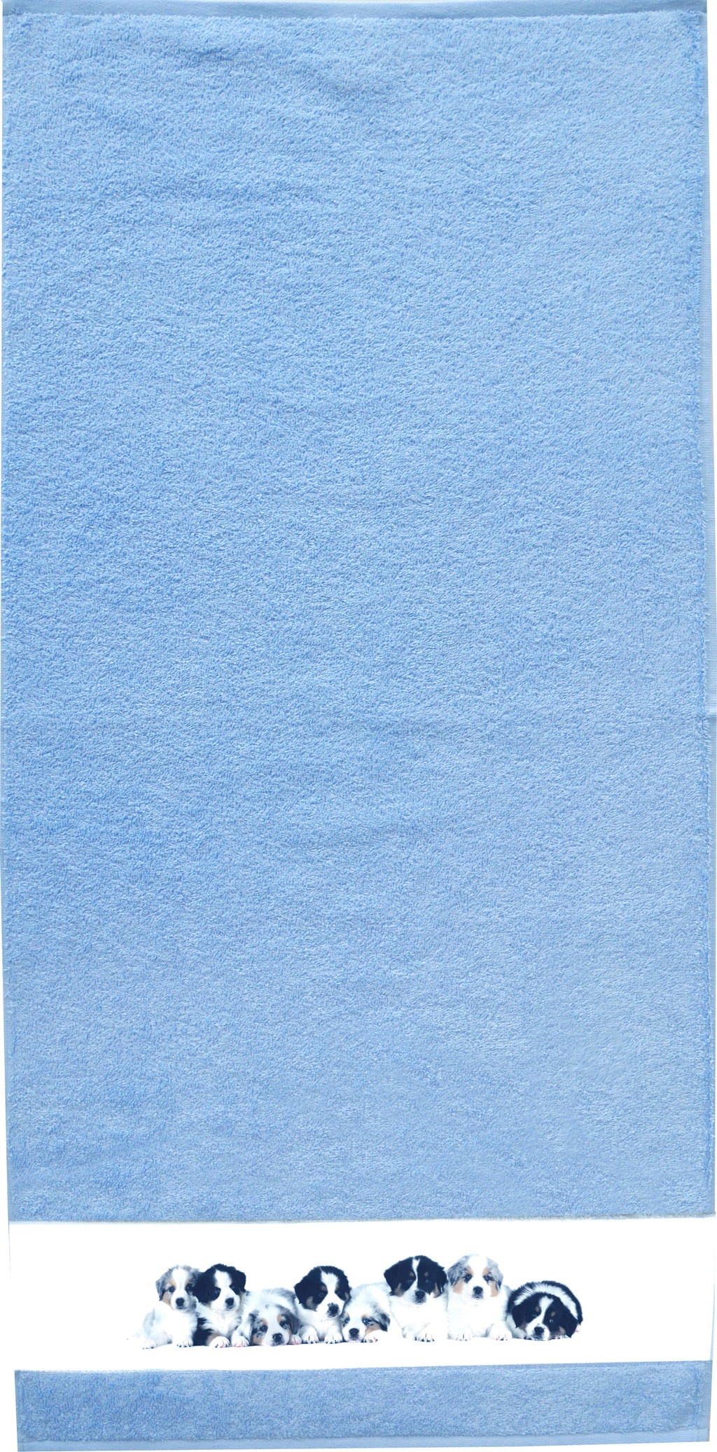 Framsohn Duschtuch mit Druckborde "Hunde", Aqua