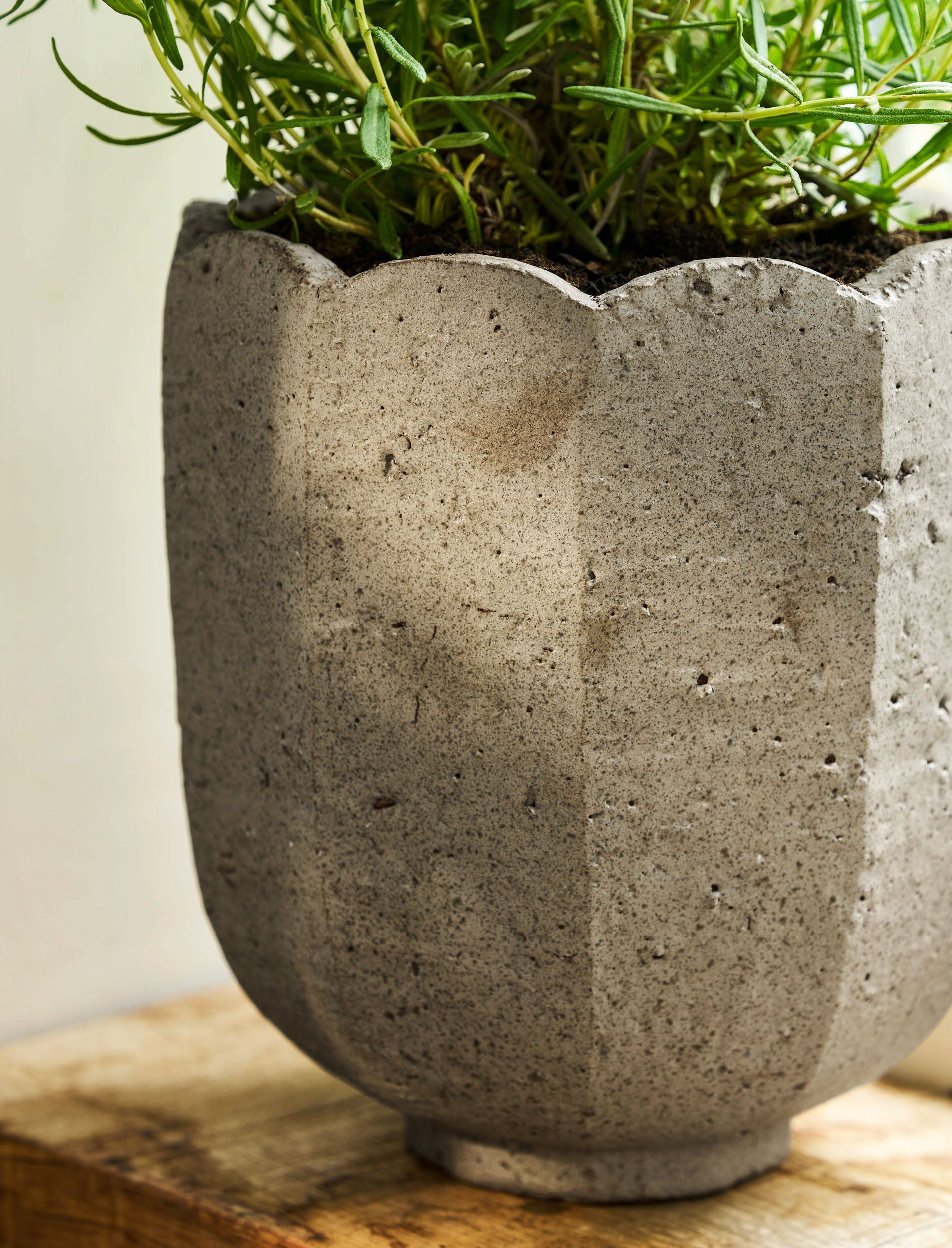 Dieser Übertopf fügt sich mit seiner modernen Zementoptik perfekt in unterschiedliche Einrichtungsstile von Landhaus bis hin zu Industrial ein. Inspiriert von den runden Formen einer Muschel strahlt er gleichzeitig angenehme Wärme aus und lässt deine Zimmerpflanzen wunderschön zur Geltung kommen.