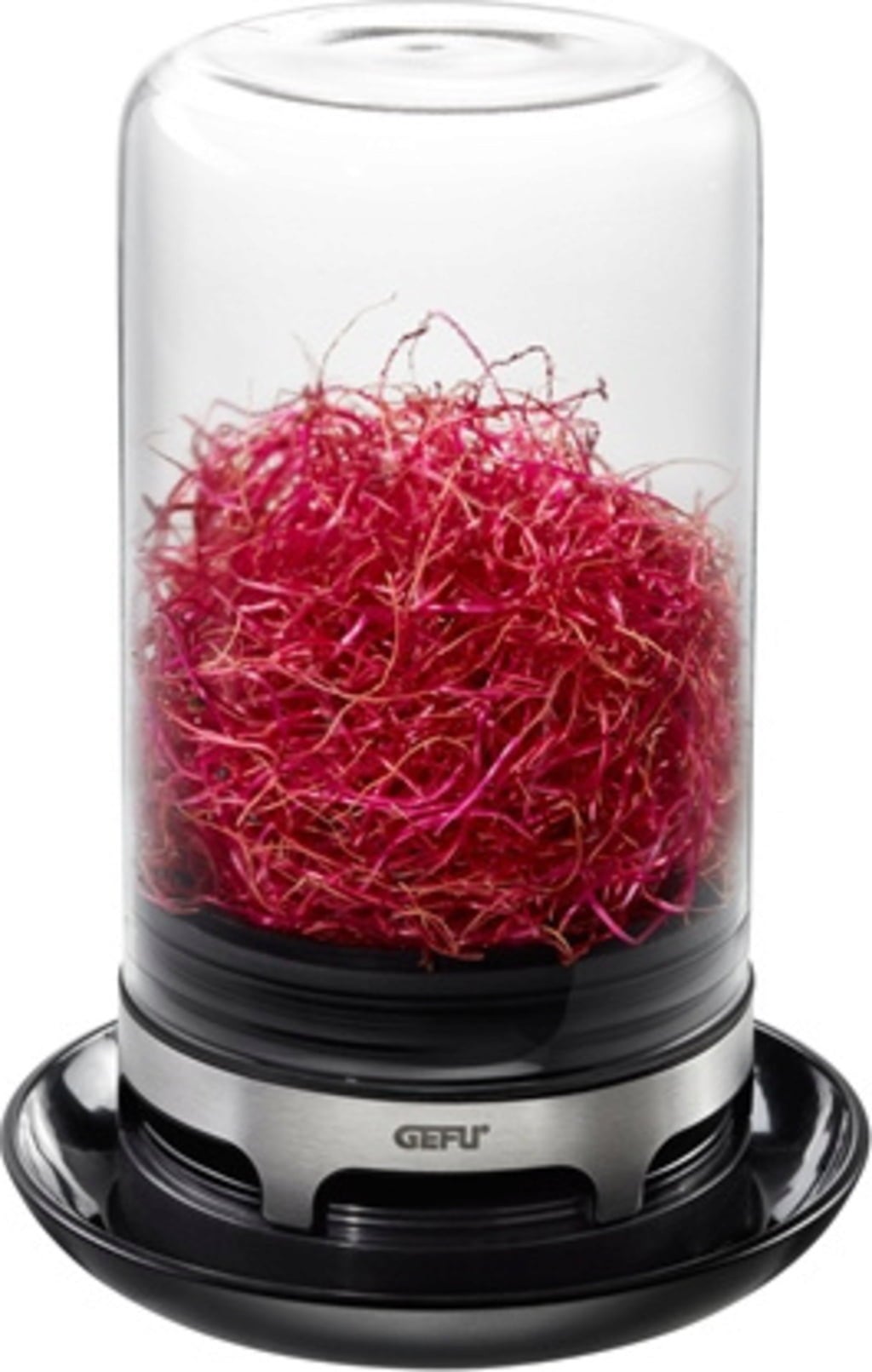 Das innovative GEFU Sprossenglas BIVITA® ist das ideale Miniatur-Gewächshaus für dein Zuhause. So erntest du knackige, mineral- und ballaststoffreiche Sprossen für deinen Salat, dein Wok-Gericht oder einfach zum Knabbern! Die Glaskuppel aus robustem Borosilikatglas sorgt für beste Lichtverhältnisse, während der intelligent gestaltete Sockel die perfekten Klimabedingungen schafft: Eine integrierte Belüftung gewährleistet eine konstante Luftzirkulation und hält deine Keimsaaten wie Alfalfa, Mungbohnen, Radieschen oder Linsen lange frisch!