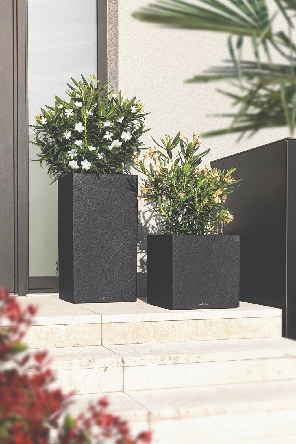 Verleihe deinem Garten oder deiner Terrasse einen eleganten Look mit dem Pflanzgefäß CANTO Slatestone. Hier verbindet sich geschmackvolle Schiefer-Optik mit mehrfach preisgekröntem Design. Das Gefäß bietet ausreichend Platz für prachtvolle Pflanzenarrangements und wird durch sein integriertes Original LECHUZA-Bewässerungssystem zum perfekten Begleiter für deine grünen Lieblinge.
