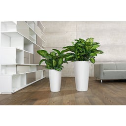 Die grazile Gefäßform von RONDO ist elegant und unkompliziert zugleich. Sie bringt alle Arten von Pflanzen optimal zur Geltung.
