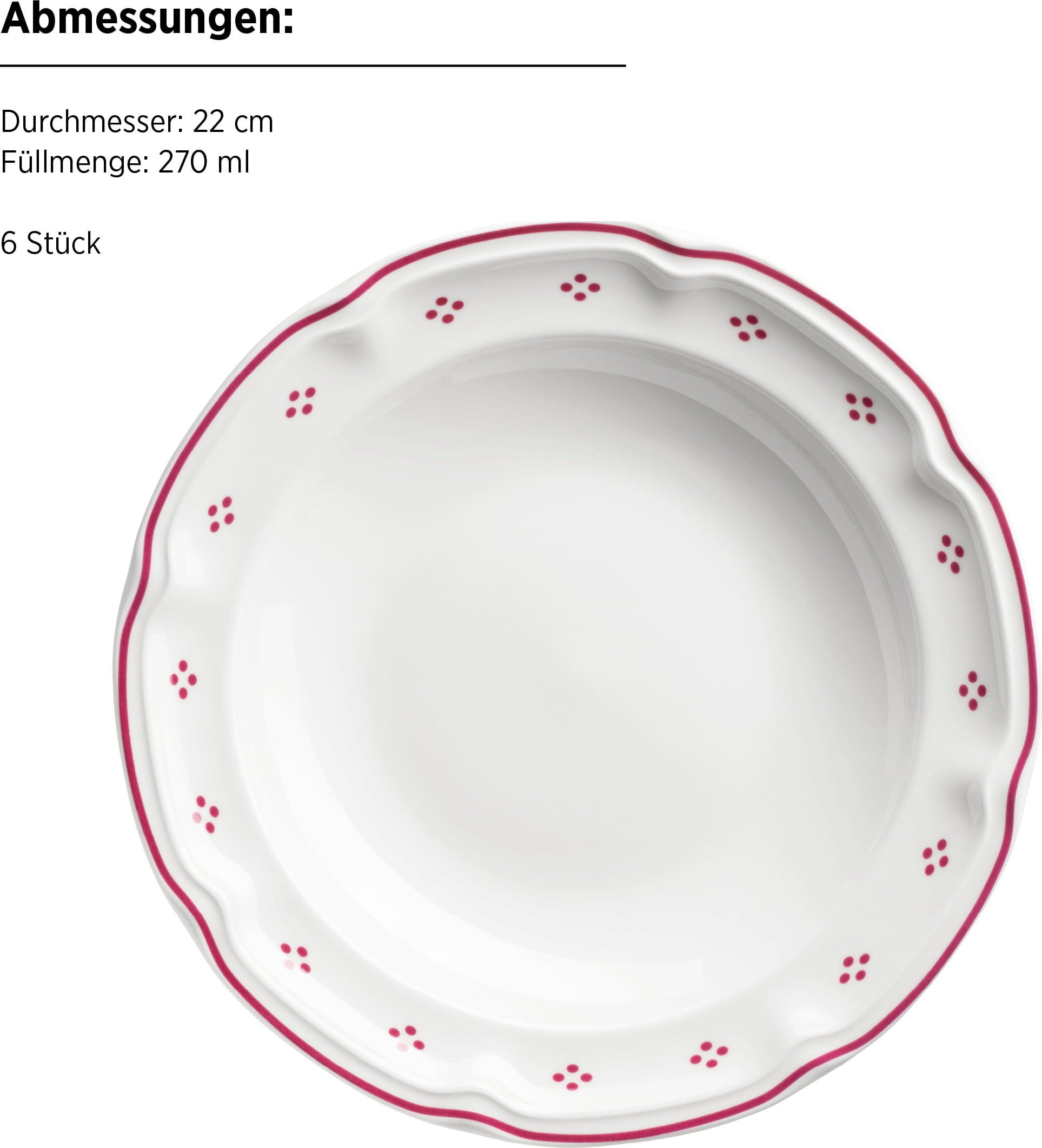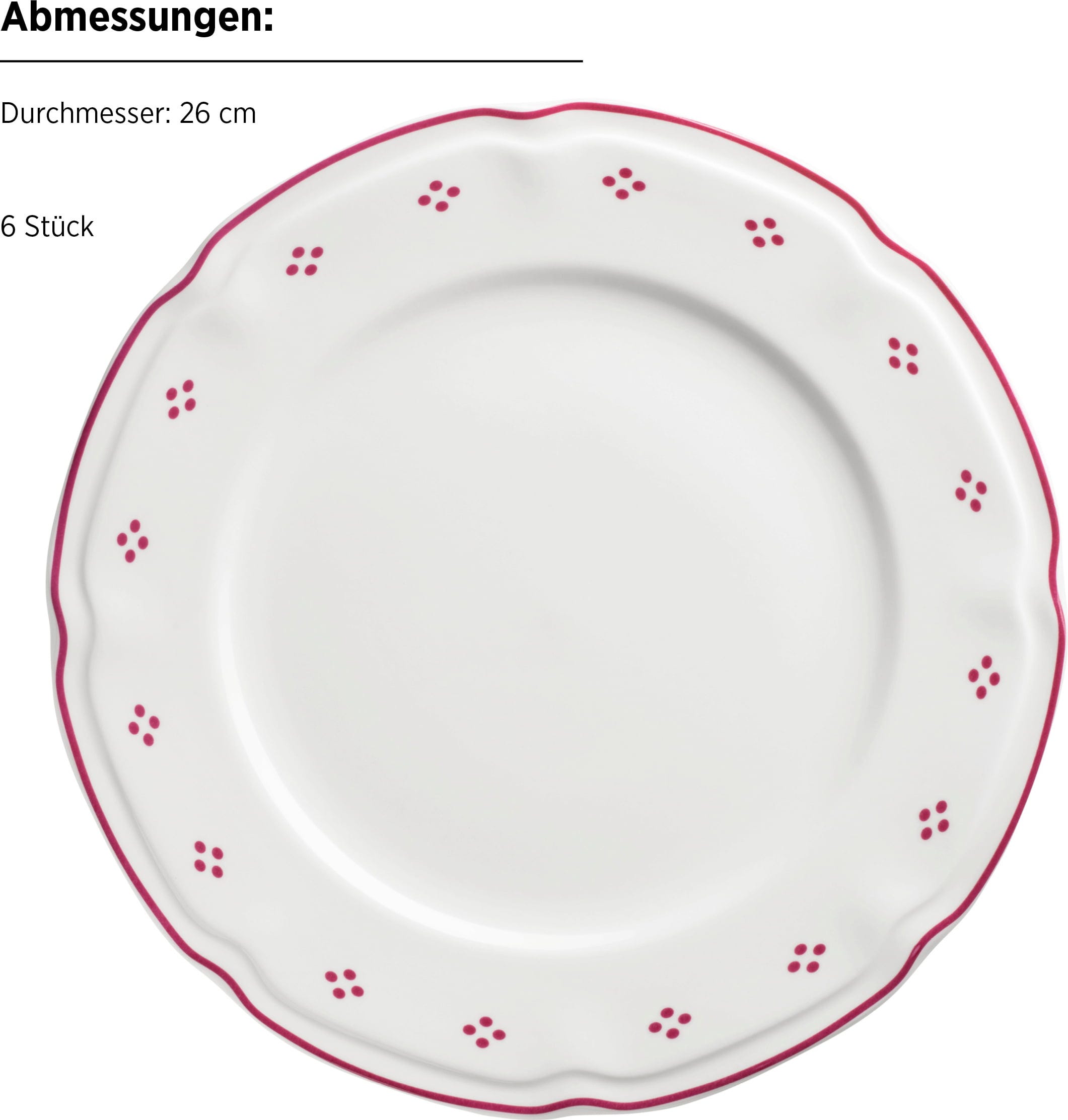 Ein verspieltes Punktmuster und der kontrastreiche rote Rand verleihen deinem gedeckten Tisch bei jeder Mahlzeit eine charmante, individuelle Note. Dank der robusten Verarbeitung ist das gesamte Service mikrowellenfest und spülmaschinengeeignet, sodass du zeitloses Design ganz unkompliziert mit höchster Alltagstauglichkeit verbindest.