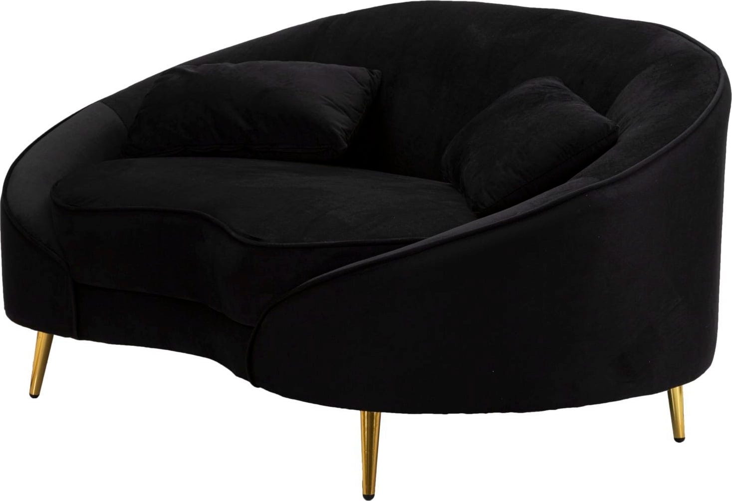 Verwandle dein Wohnzimmer in eine Oase des modernen Glamours mit diesem eleganten Zweisitzer-Sofa! Der luxuriöse, schwarze Stoff in Samtoptik und die weichen, einladenden Linien der geschwungenen, asymmetrischen Form sorgen für einen beeindruckenden Blickfang.