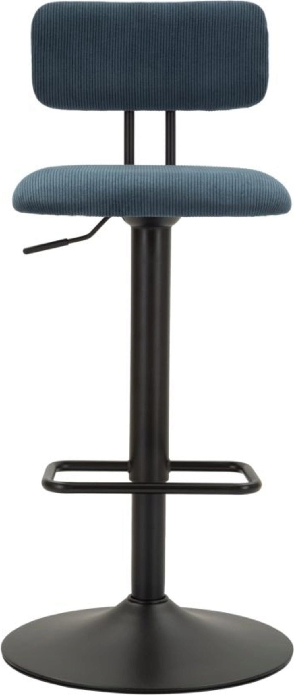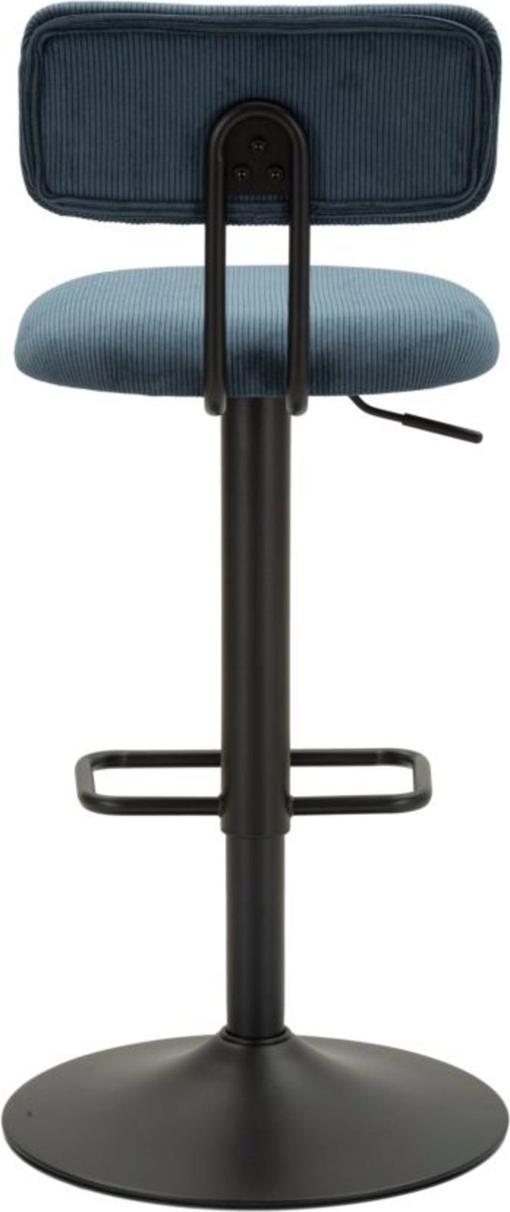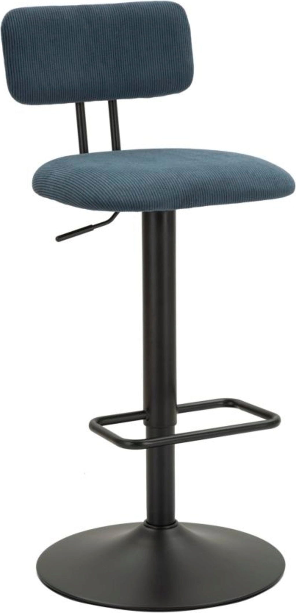 Der strukturierte Stoffbezug in einem sanften Hellblau verleiht deinem Interieur eine frische, einladende Note, während das robuste schwarze Metallgestell für Stabilität und Langlebigkeit sorgt. Dank der integrierten Höhenverstellung und der praktischen, umlaufenden Fußstütze passen sich die Hocker perfekt jeder Tresenhöhe an. Ob für das gemütliche Frühstück oder den Drink am Abend – dieses Set vereint nostalgischen Charme mit modernem Komfort!
