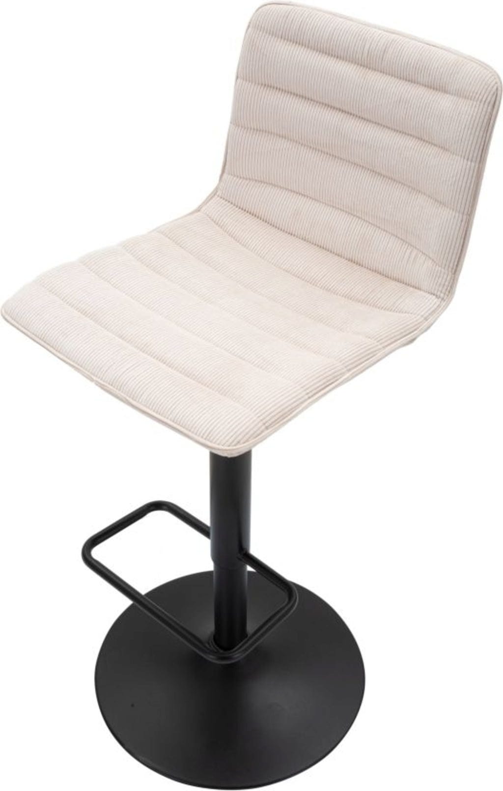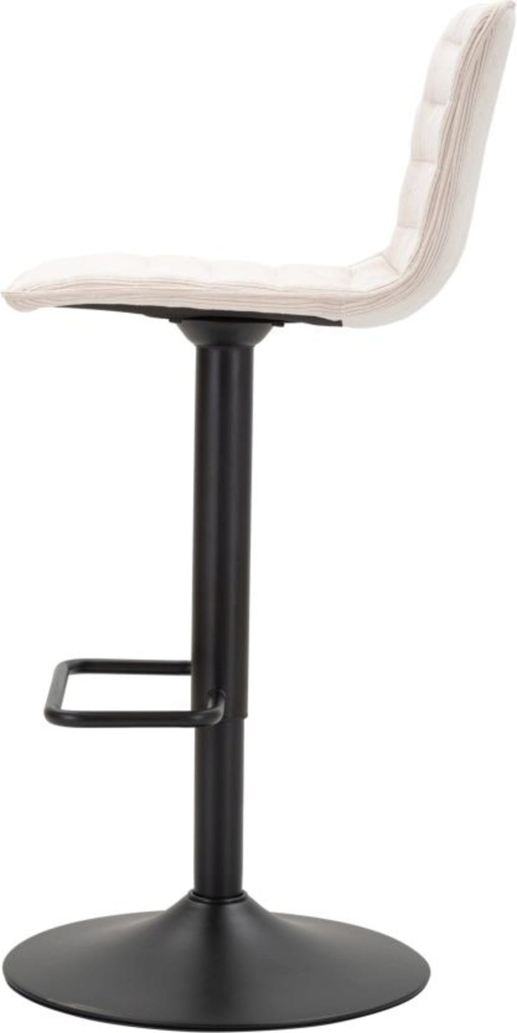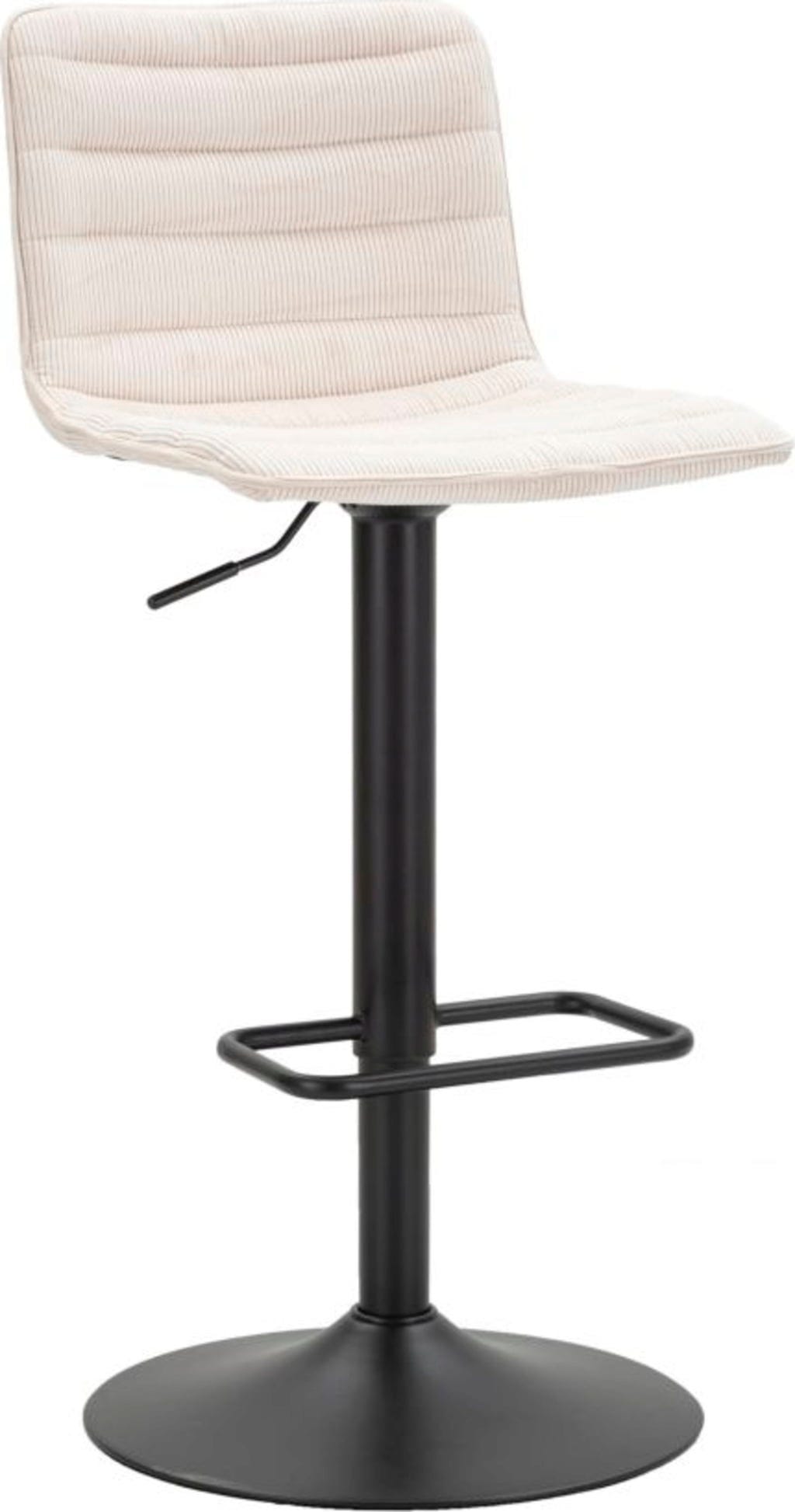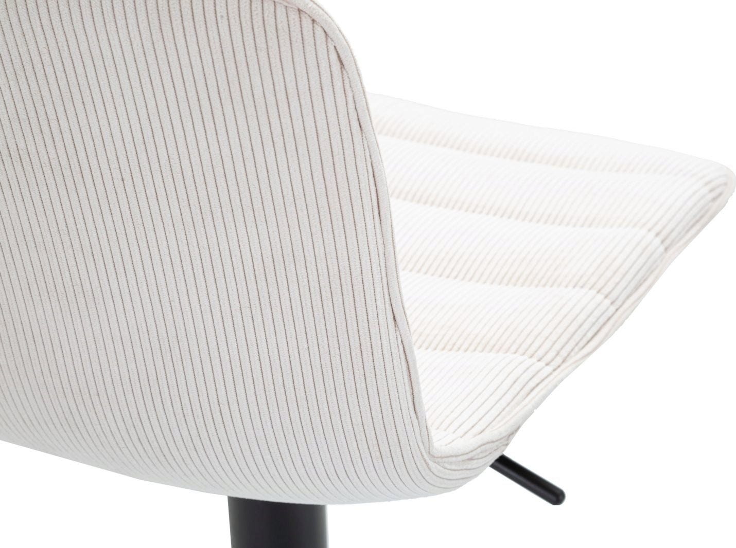 Der strukturierte Stoffbezug in einem schicken Weiß verleiht deinem Interieur eine frische, einladende Note, während das robuste schwarze Metallgestell für Stabilität und Langlebigkeit sorgt. Dank der integrierten Höhenverstellung und der praktischen, umlaufenden Fußstütze passen sich die Hocker perfekt jeder Tresenhöhe an. Ob für das gemütliche Frühstück oder den Drink am Abend – dieses Set vereint nostalgischen Charme mit modernem Komfort!