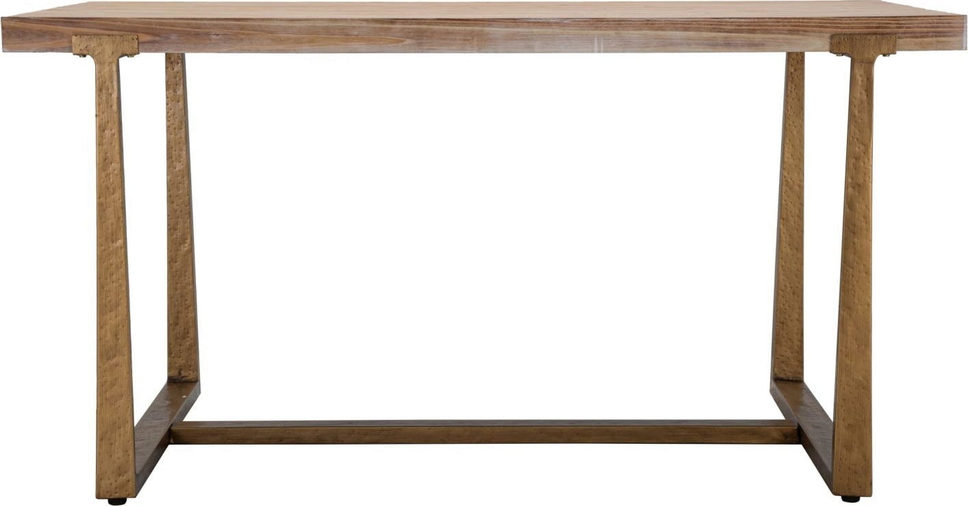 Im Kontrast dazu steht das kantige Metallgestell in einem dunkleren Bronze-Ton. Dieses Gestell sorgt nicht nur für höchste Stabilität, sondern verleiht dem Tisch auch einen kühlen, industriellen Touch. Dieser Tisch ist das ideale Herzstück für dein modernes Zuhause, das Wert auf klare Formen und charaktervolle Materialien legt!