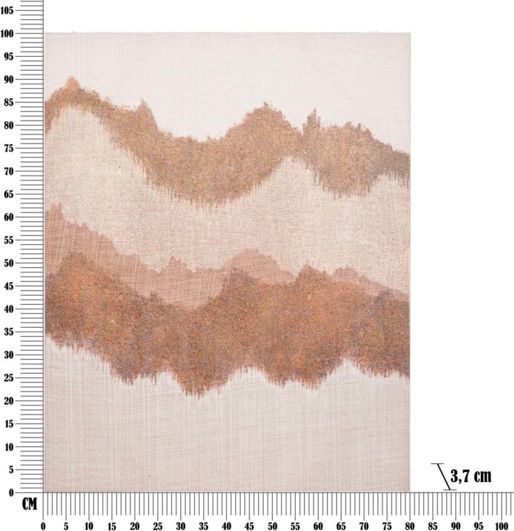 Das Motiv erinnert an sanft geschwungene Wüstendünen, die durch verschiedene Strukturen zum Leben erweckt werden: Fein gekörnte Flächen treffen auf gerippte Texturen und glatte Farbverläufe in Beige, Braun und Anthrazit. Diese haptischen Kontraste verleihen dem Bild eine faszinierende Tiefe und machen es zu einem Unikat mit Charakter. Aufgespannt auf einem stabilen Holzrahmen, harmonieren die natürlichen Farben perfekt mit jedem Einrichtungsstil und schaffen eine warme, einladende Umgebung.