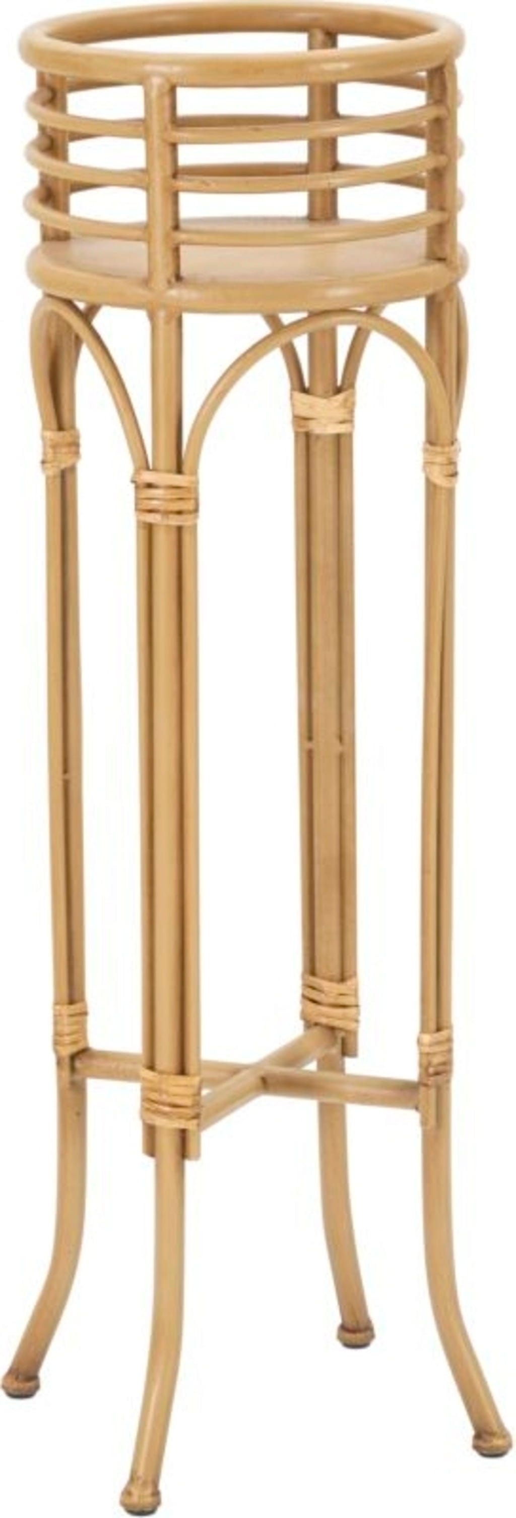 Die klaren Linien des hohen Sockels und die harmonische Materialkombination aus Eisen und Kunststoff in natürlicher Optik sorgen dafür, dass sich der Ständer perfekt in jede Art von Einrichtung fügt – von modern bis klassisch. Dank der erhöhten Position auf den sanft geschwungenen Beinen kommen hängende oder üppige Grünpflanzen besonders gut zur Geltung und verleihen deinem Zuhause eine luftige, grüne Frische.