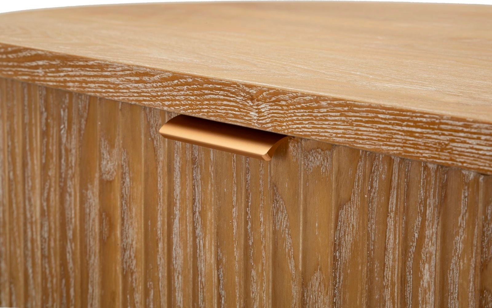 Suchst du nach einer vielseitigen Stauraumlösung, die Funktionalität und skandinavischen Stil vereint? Der Schrank Göteborg ist die perfekte Wahl für dich. Seine robuste Konstruktion und die weichen, abgerundeten Linien in Naturholz-Optik verleihen jedem Raum sofort eine elegante Note. Die Fronten des Schranks sind mit einer modernen, vertikal geriffelten Struktur versehen, was dem Möbelstück eine raffinierte Textur verleiht.