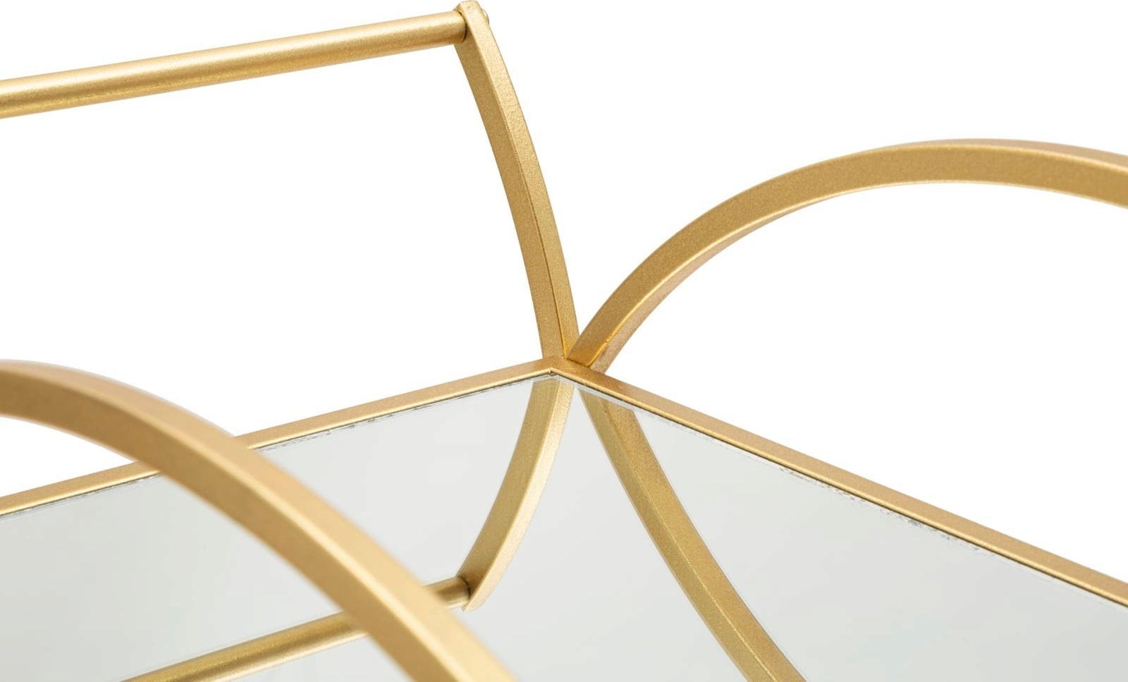 Diese abgerundeten Linien verleihen dem Möbelstück eine besonders weiche und harmonische Optik. Ausgestattet mit zwei eleganten, verspiegelten Glasablagen bietet der Wagen die perfekte Bühne für edle Karaffen und Gläser. Dank der vier praktischen Rollen und des integrierten Schiebegriffs lässt er sich mühelos und flexibel bewegen. Ein Hauch von Hollywood-Regency-Stil, der Funktionalität und Glamour in dein Zuhause bringt!