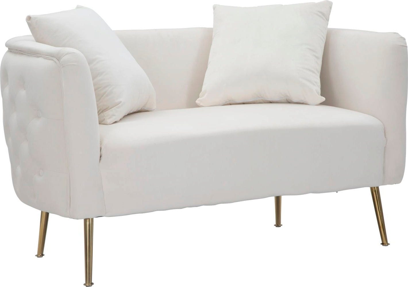 Die goldfarbenen Metallbeine bilden einen eleganten Kontrast zum Stoff, wobei Gold und Samt zu einem einzigartigen Stil verschmelzen – zwei passende Kissen sind im Lieferumfang enthalten!