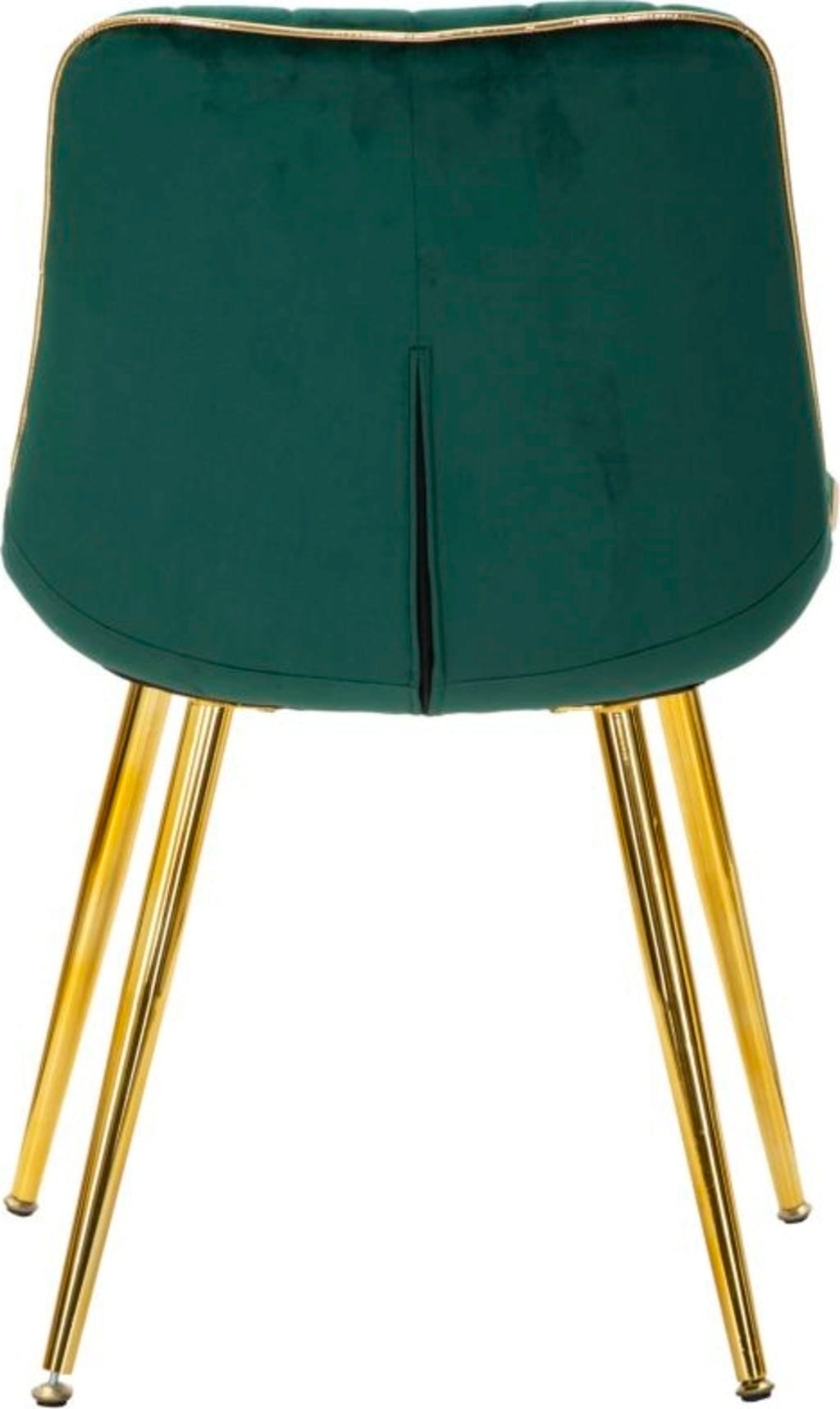 Ein besonderer Blickfang sind die umlaufenden goldenen Akzente an der Sitzschale, die perfekt mit den schlanken, goldfarbenen Metallbeinen harmonieren. Ob für festliche Dinner oder entspannte Abende – die Kombination aus tiefem Grün und glänzendem Gold sorgt für eine Atmosphäre voller Glamour und Entspannung.