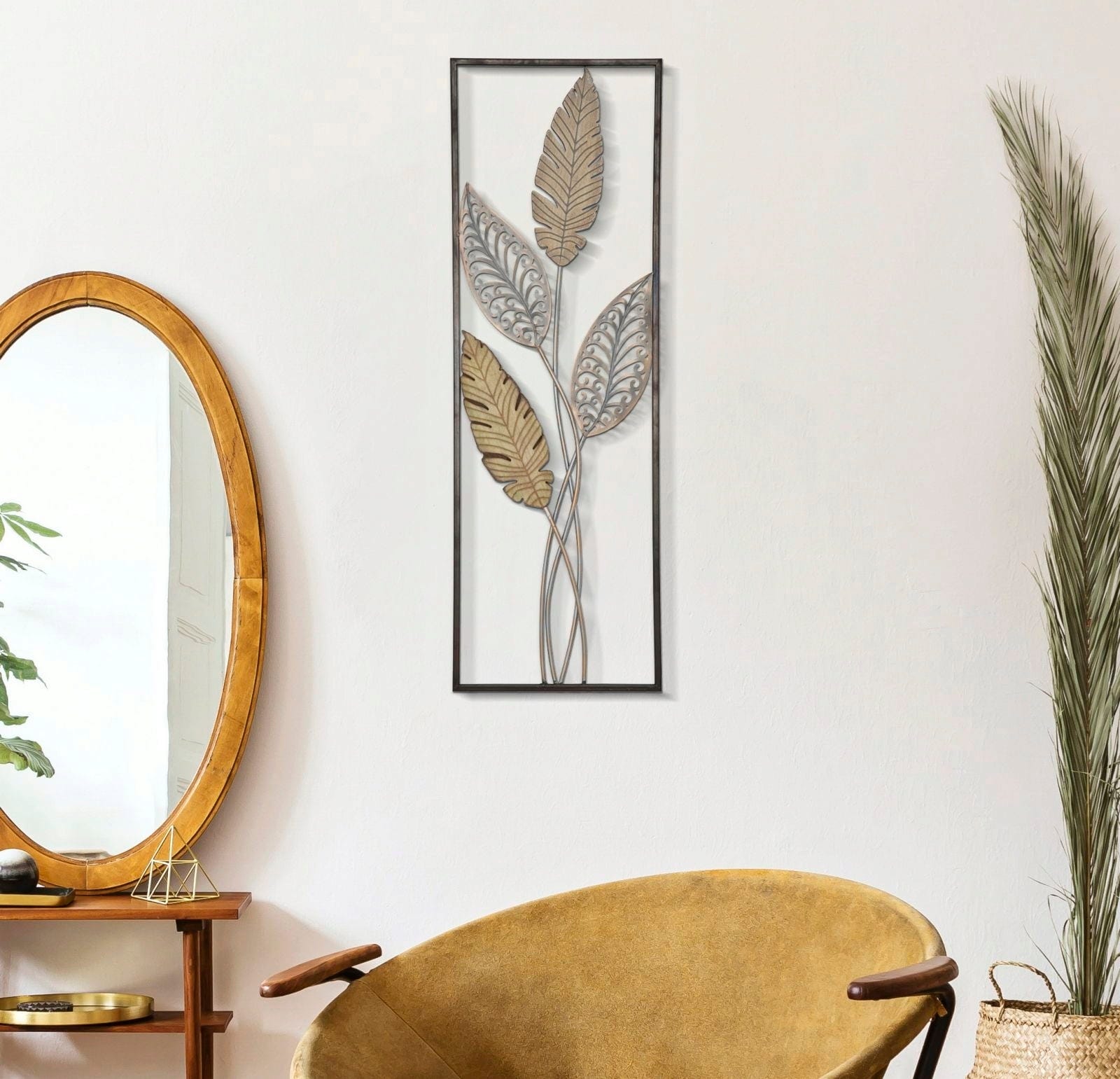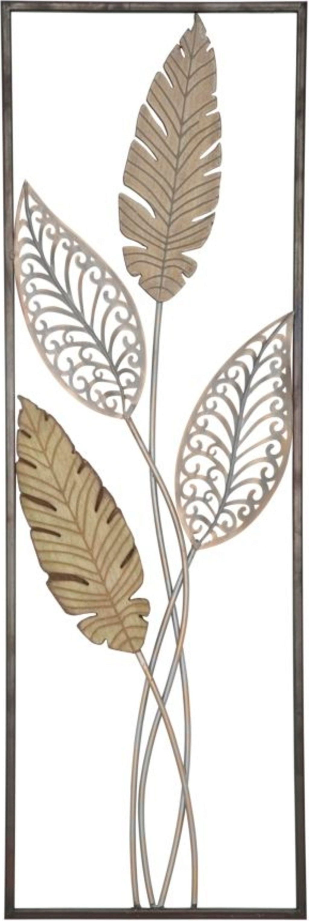 Die filigranen Durchbrüche der Blätter wirken besonders leicht und lassen das Licht auf faszinierende Weise spielen, während der schlichte, dunkle Rahmen das naturnahe Design elegant einfasst. Ob im Wohnzimmer über der Couch oder als einladender Blickfang in deinem Flur – dieses rechteckige Kunstobjekt bringt einen Hauch von Nostalgie und zeitlose Eleganz in deine vier Wände.
