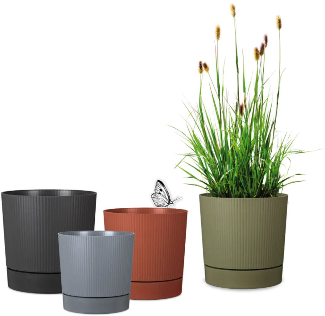 Das LINO+ Pflanzgefäß bringt mit seiner feinen Linienstruktur eine stilvolle und moderne Note in deinen Außenbereich. Es setzt Pflanzen gezielt in Szene und sorgt gleichzeitig für ein harmonisches Gesamtbild.