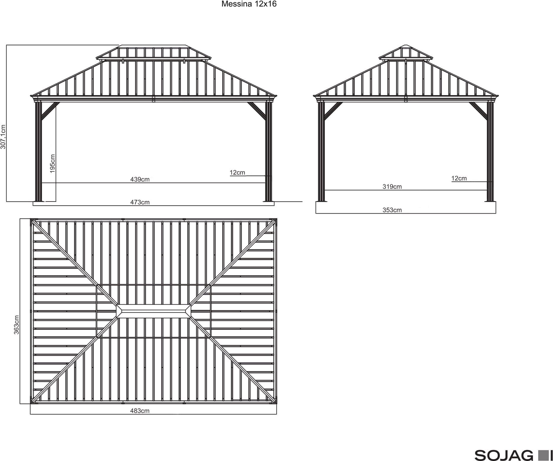 Sojag Pavillon Messina 12x16 / 4,8 x 3,6 m, Anthrazit