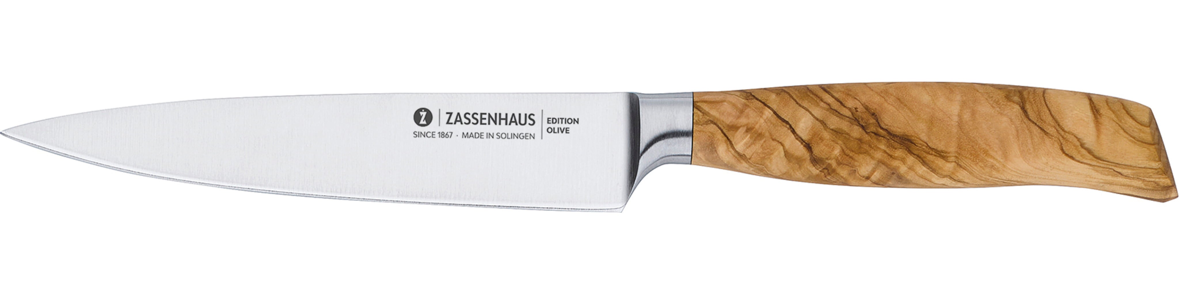 Mit dem Schinkenmesser EDITION OLIVE von Zassenhaus gelingen hauchdünne, gleichmäßige Scheiben mühelos. Die lange, handgeschmiedete Klinge gleitet sanft durch Braten, Schinken oder Gemüse, während der ergonomische Olivenholzgriff ein komfortables Arbeiten ermöglicht. Perfekt für alle, die Wert auf Stil, Präzision und höchste Qualität in der Küche legen.