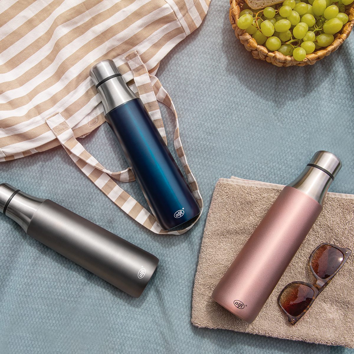 Cette gourde pratique vous permet de boire de délicieuses boissons chaudes ou fraîches, même pendant vos déplacements. Une isolation bien pensée en acier inoxydable garde le café ou le thé au chaud jusqu'à 8 heures et l'eau minérale, le jus de fruits jusqu'à 16 heures au froid.