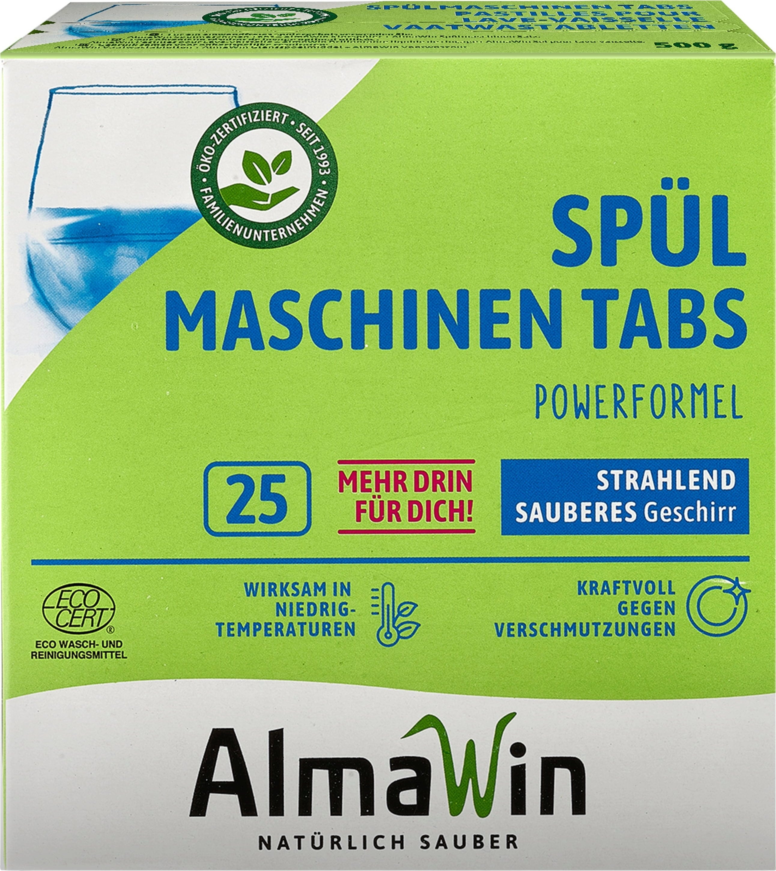 Les tablettes AlmaWin sont composées de matières premières naturelles et conviennent à tous les lave-vaisselles.
