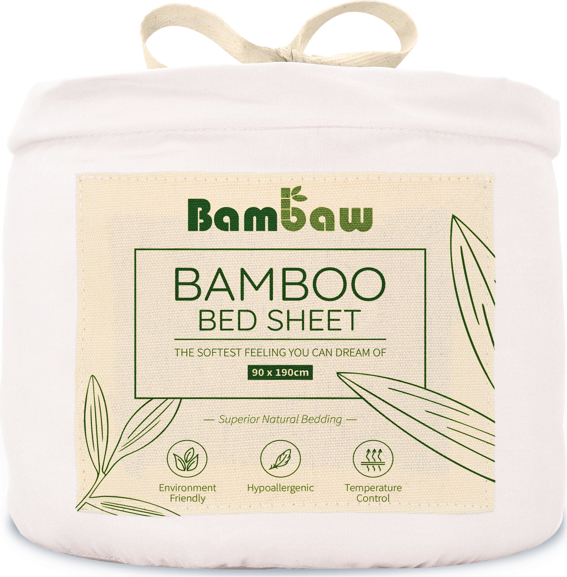 Bambaw Cozy Drap Housse en Bambou 90 x 190 cm, White
