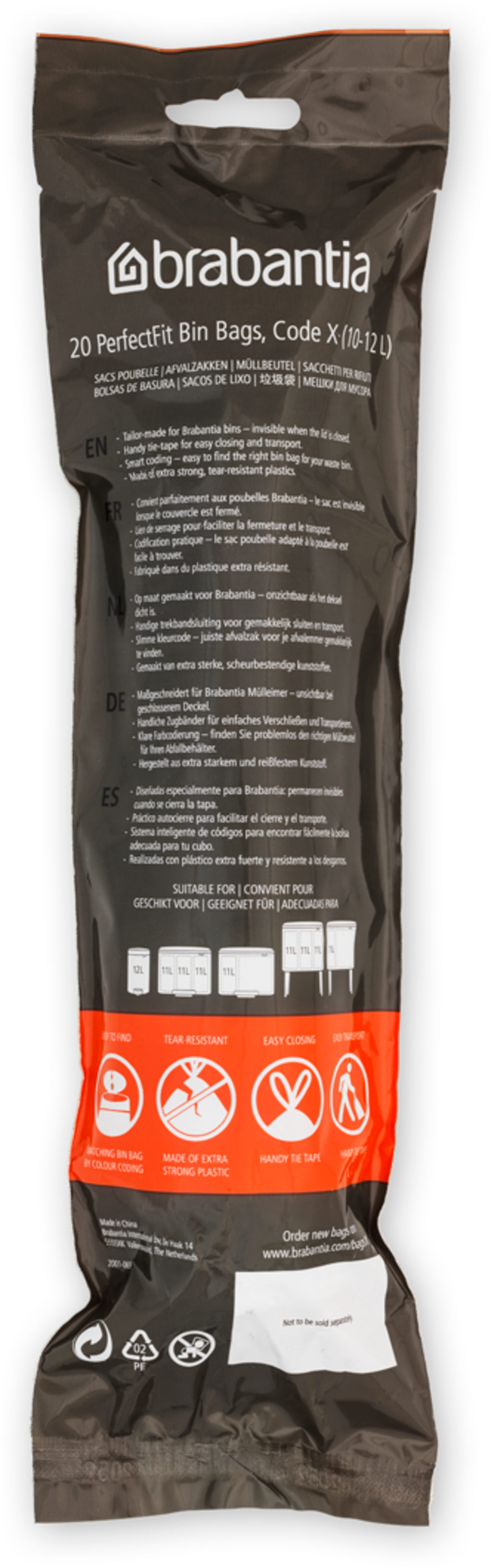 Brabantia Sacs Poubelle PerfectFit pour Bo Touch Bin - Rouleau, 12L (X) - 20 sacs