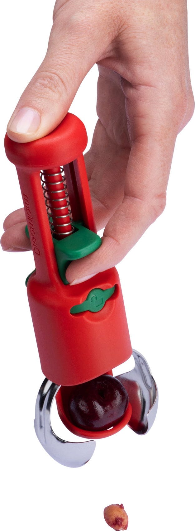 Avec Hullapit de Dreamfarm, la cuisine s’équipe d’un ingénieux dénoyauteur 3-en-1 qui permet de retirer facilement le pédoncule des fraises et de dénoyauter rapidement les cerises ou les olives. Grâce aux lames coniques précises en acier inoxydable, il est également possible d’enlever proprement les parties abîmées des fruits, tandis que le piston à ressort dirige les noyaux directement dans le compartiment de collecte intégré.