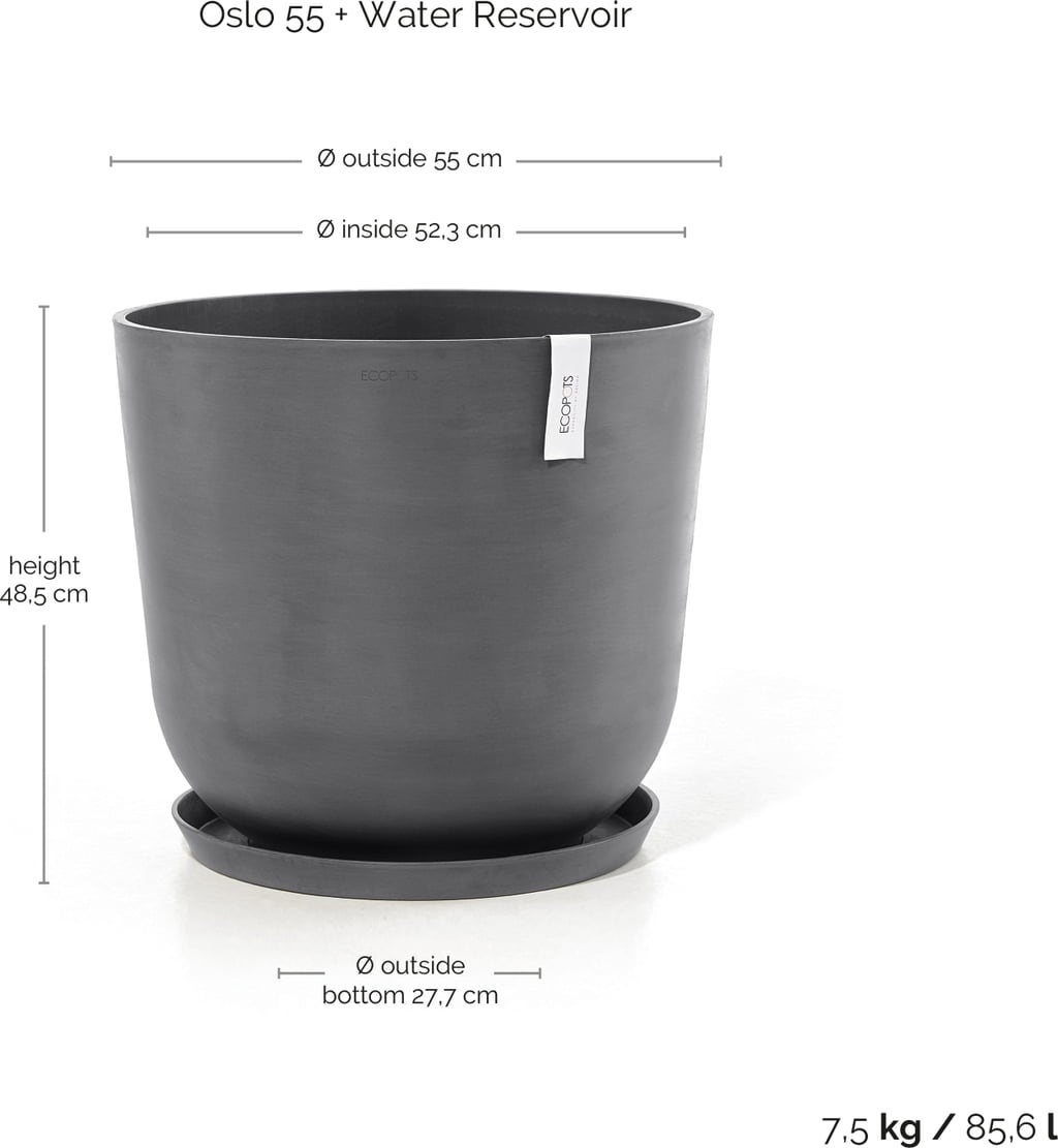 Ecopots Oslo Gris + Réservoir d'Eau, Ø 55 cm, hauteur 47,90 cm