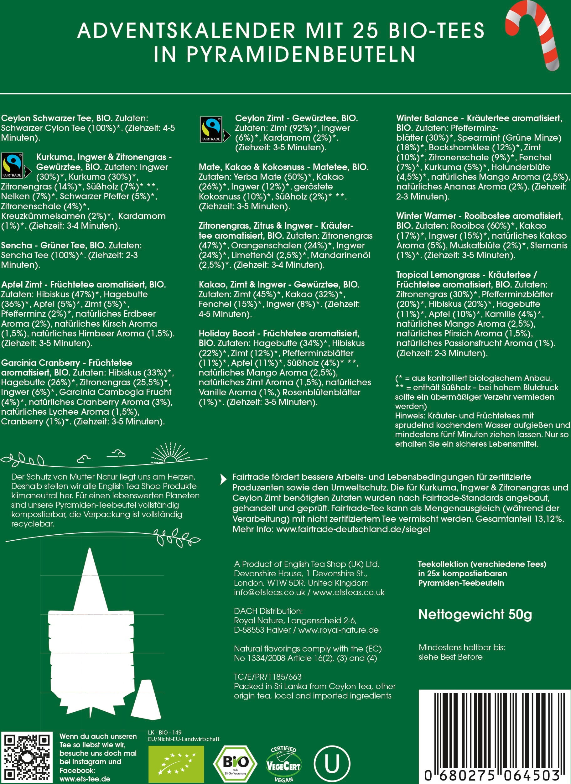 English Tea Shop Calendrier de l'Avent Thés & Tisanes Bio "Christmas Tree", 25 sachets pyramidaux (50 g)