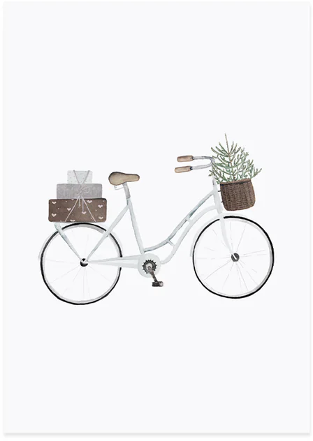 Eulenschnitt Carte Aquarelle, Christmas Bicycle