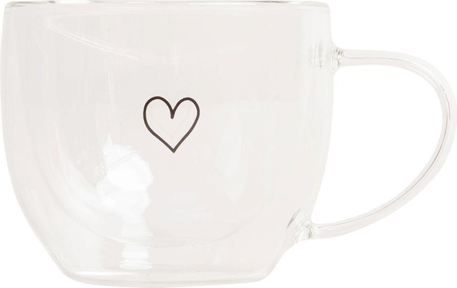 Cette tasse en verre à double paroi avec son motif cœur transforme chaque boisson chaude en une expérience unique. L’effet suspendu de la boisson dans le verre et la paroi extérieure qui reste froide assurent un confort optimal. Le petit cœur noir dessiné sur la paroi fait de cette tasse un véritable objet coup de cœur, aussi pratique que décoratif.