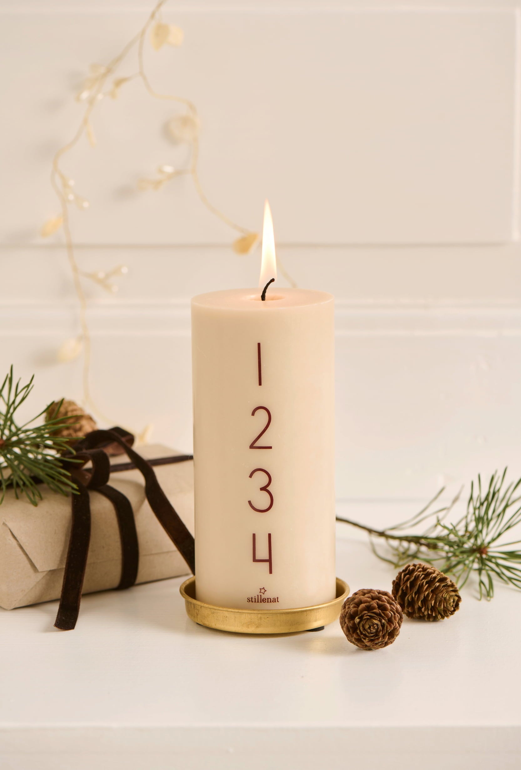 Cette bougie est une alternative élégante à la traditionnelle couronne de l’Avent et offre une façon chaleureuse de patienter jusqu’à Noël.