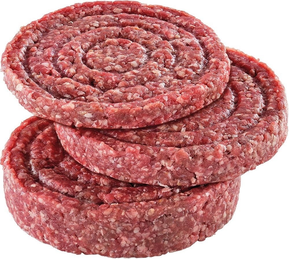 Mode d’emploi : Graissez légèrement la base ou utilisez du papier cuisson, ajoutez la viande hachée, puis pressez avec la partie supérieure.