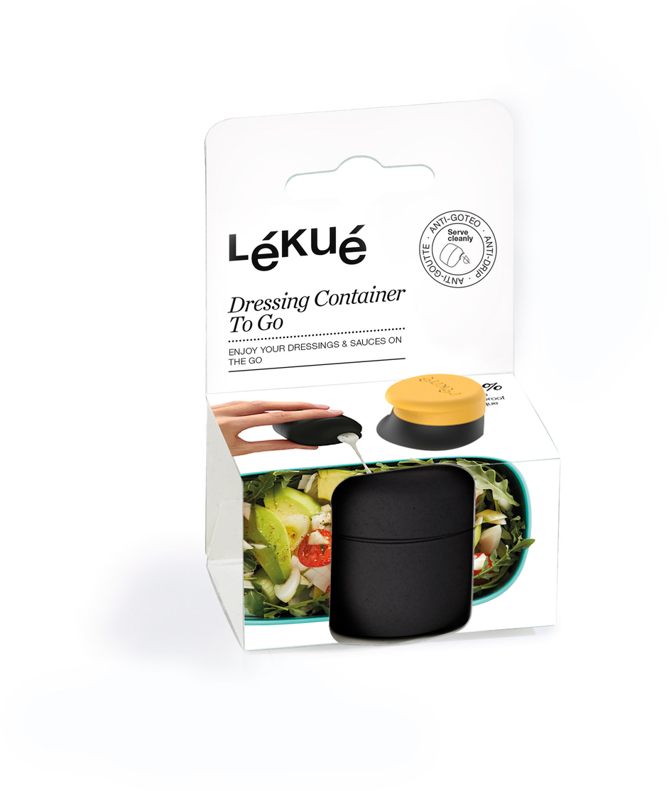 Parfait pour emporter vos sauces, vinaigrettes & co. Ce petit récipient compact se glisse dans n'importe quel sac et passe même au micro-ondes.