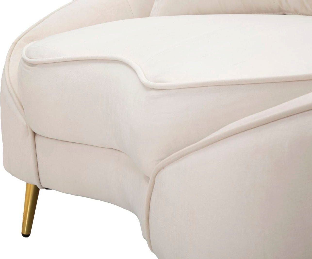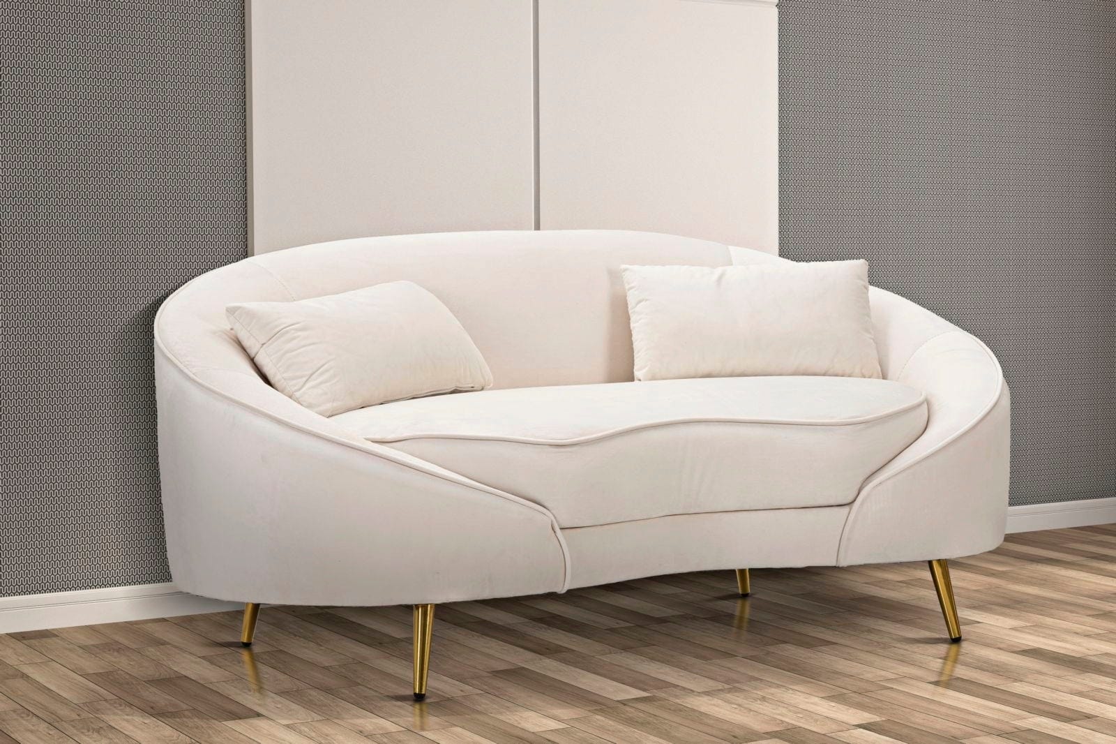 Apportez une touche d'élégance, de glamour et de confort luxueux à votre salon avec ce canapé deux places stylé ! Le revêtement doux et luxueux dans une teinte crème claire et les lignes douces et accueillantes de sa forme courbée et asymétrique en font un élément central impressionnant.