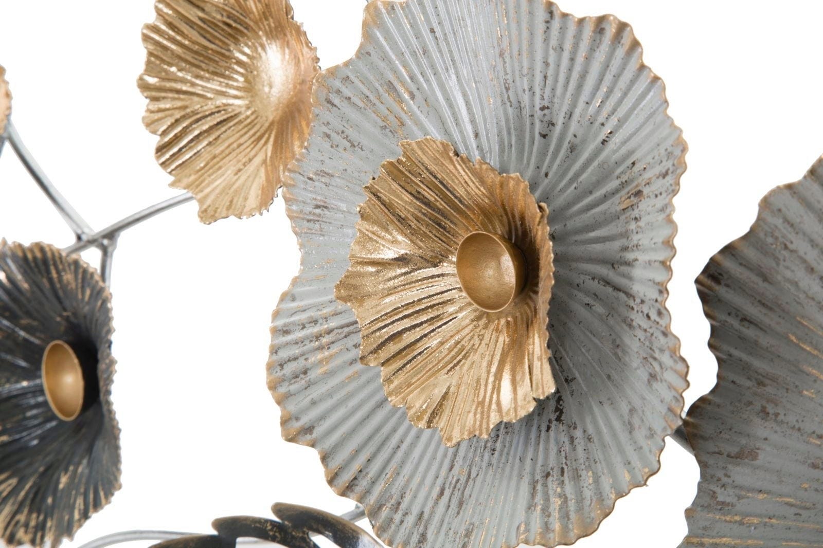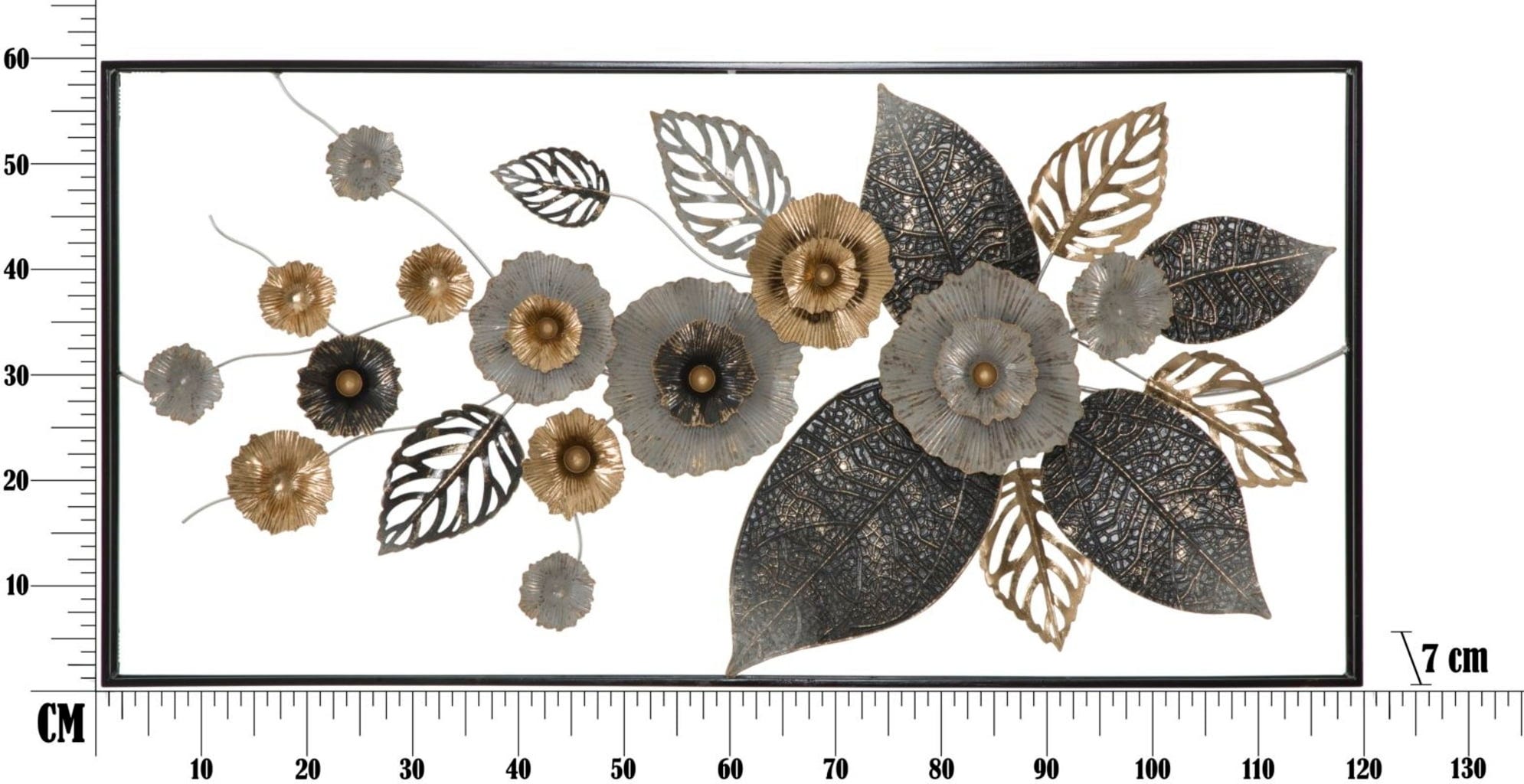 Transformez votre mur en paysage artistique avec la décoration murale Plus de Mauro Ferretti. Ce vaste panneau 3D en métal reprend en grand format la tendance des décors muraux en relief et apporte une atmosphère chaleureuse à la pièce. Le design met en scène un panorama détaillé de fleurs et de feuilles stylisées, dans un mélange harmonieux d’or, d’argent et de tons métalliques plus sombres.
