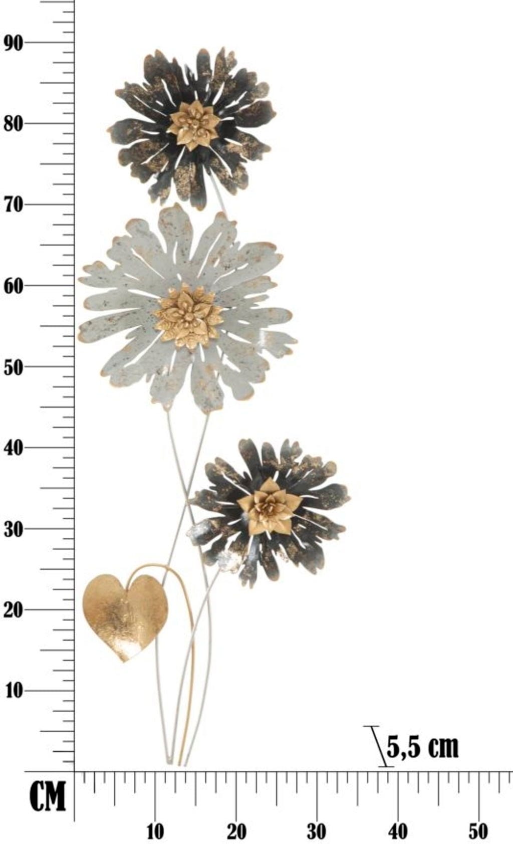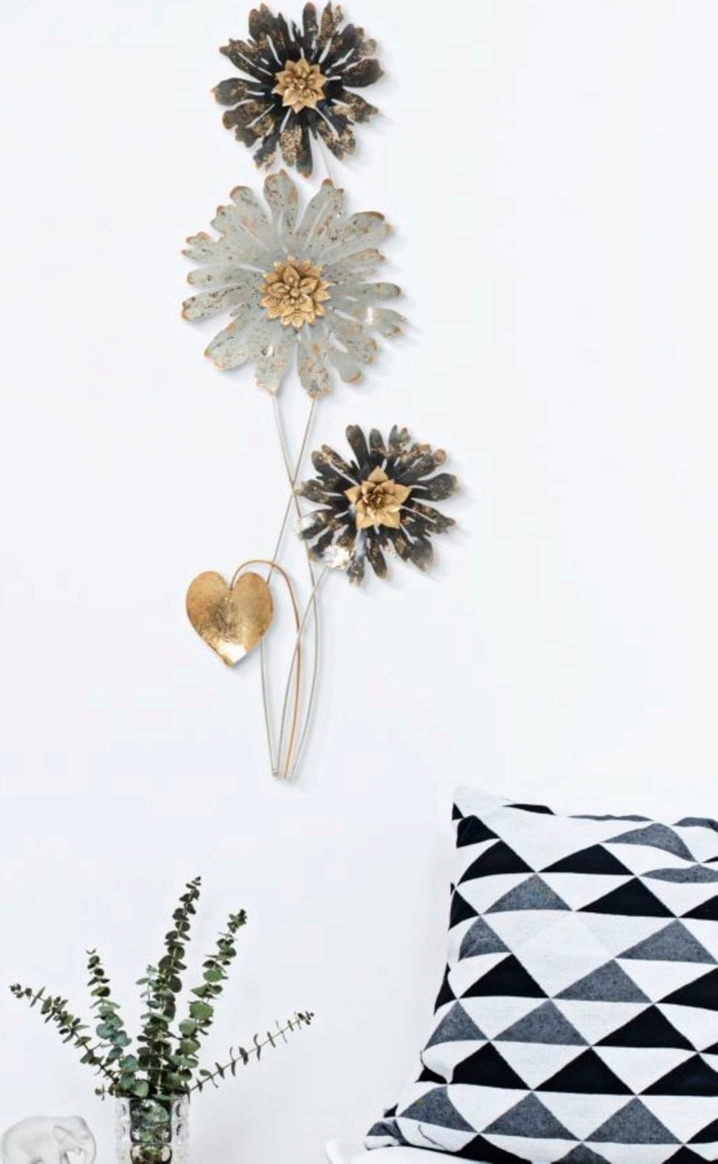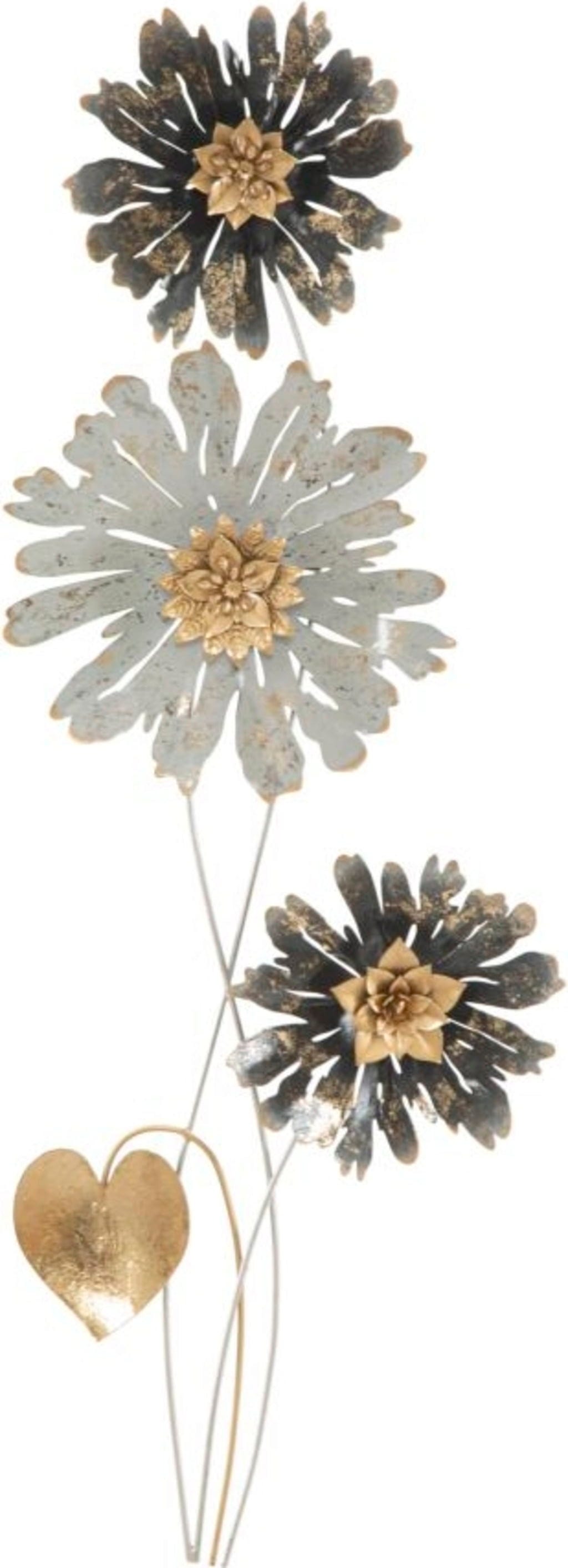 Donnez du caractère à vos murs avec la décoration murale Simply de Mauro Ferretti. Ce panneau 3D vertical en métal capture la beauté de la nature dans une esthétique vintage, artistique et pleine de charme. Trois fleurs finement travaillées, dans un mélange raffiné de gris patiné et de tons dorés chaleureux, créent une atmosphère surprenante dans n’importe quelle pièce.