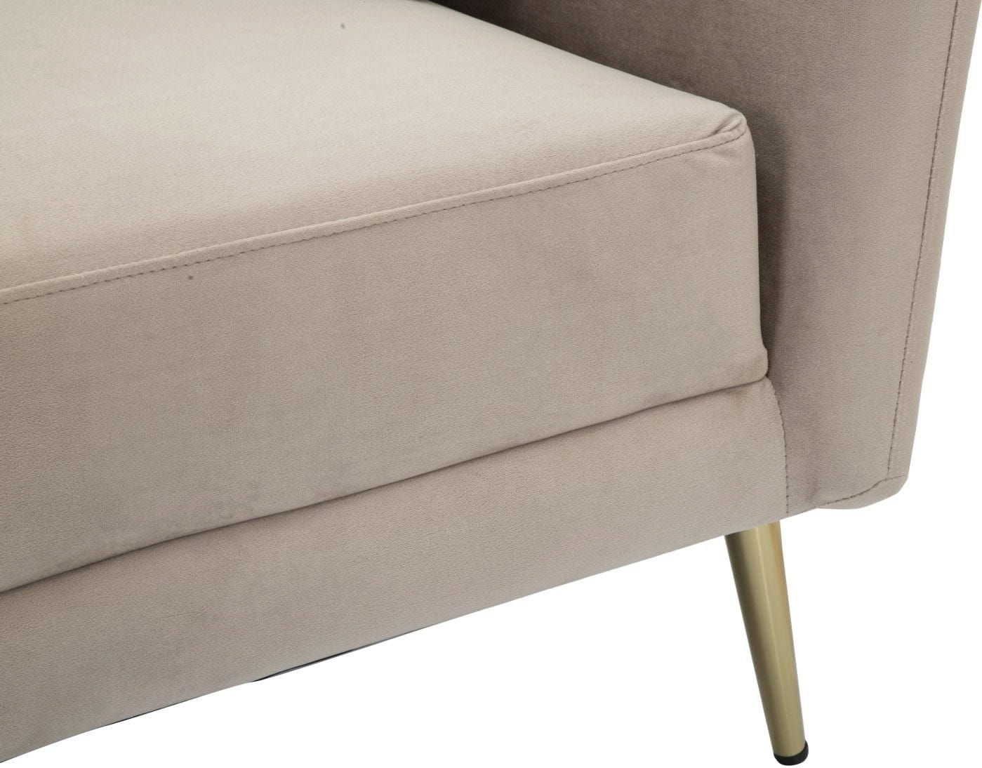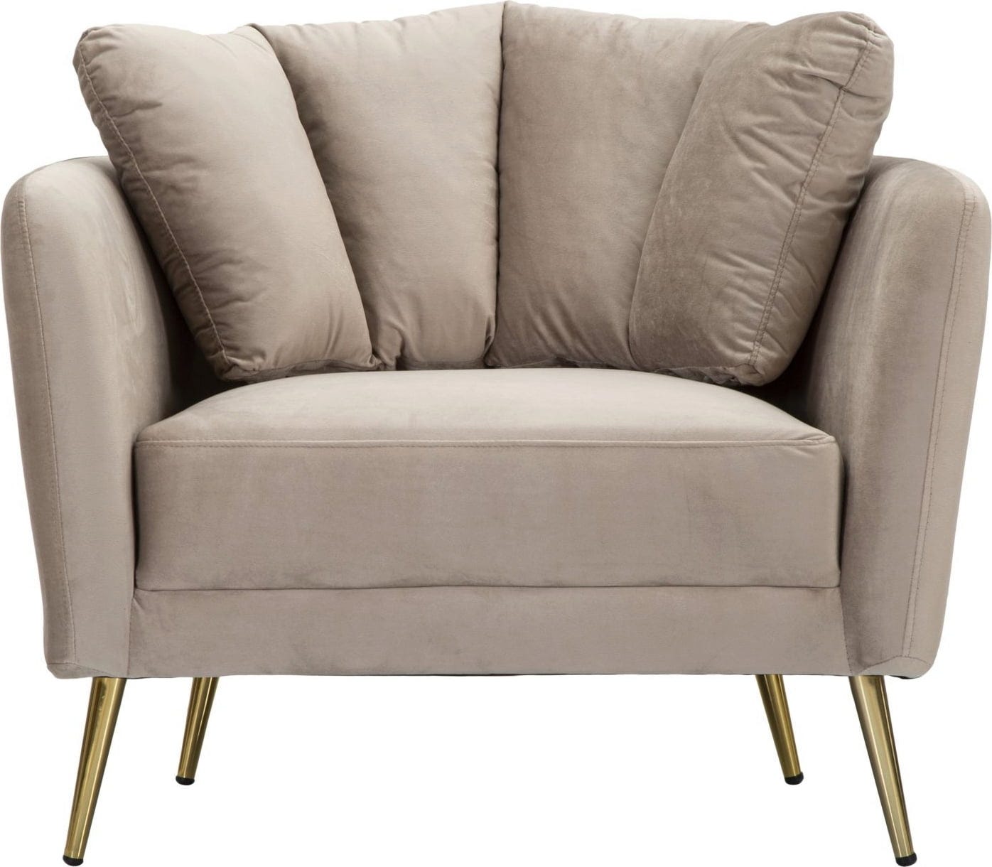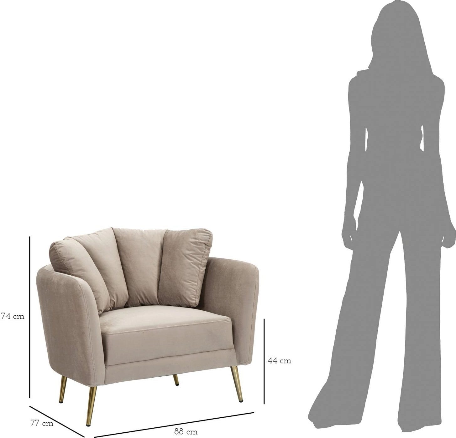 L'esthétique est parfaitement complétée par les pieds en métal doré, fins et brillants, qui confèrent au fauteuil une touche moderne et un soupçon de glamour. Que ce soit comme pièce unique ou en complément d'un canapé, ce fauteuil est idéal pour apporter une touche élégante et confortable à n'importe quelle pièce.