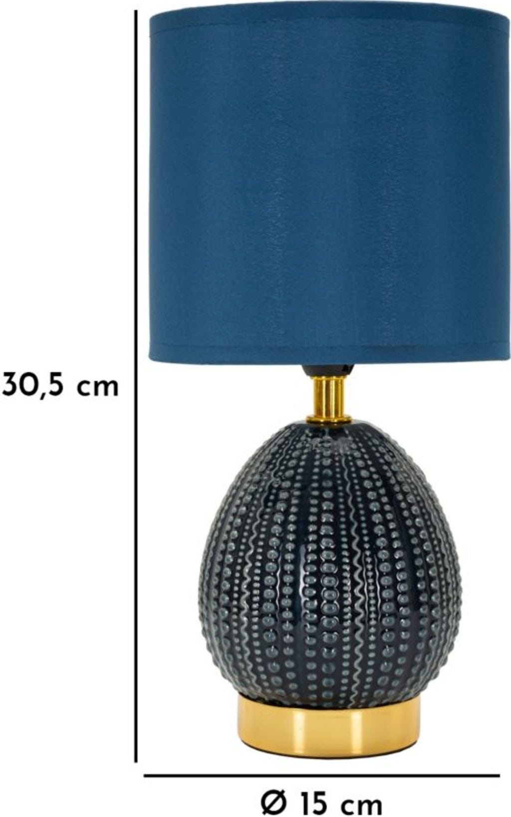 Donnez à votre pièce un style moderne et une luminosité subtile en un clin d'œil avec cette élégante lampe de chevet. Le pied de lampe, d'un bleu chic et intemporel, se distingue par une décoration en relief unique et délicate, composée de points irréguliers. Cette texture non conventionnelle crée un accent moderne et palpable, tout en dégageant une sensation de calme.