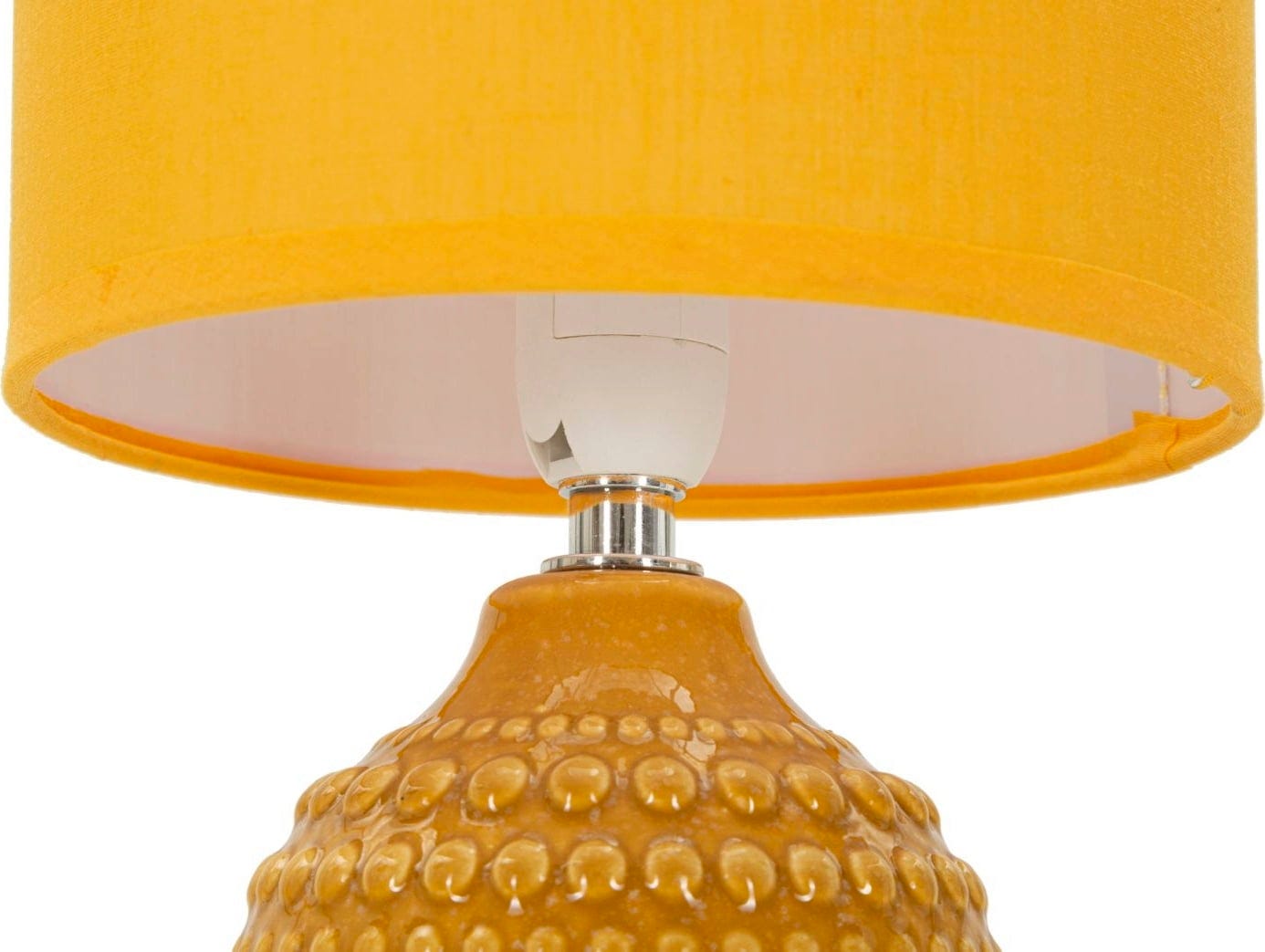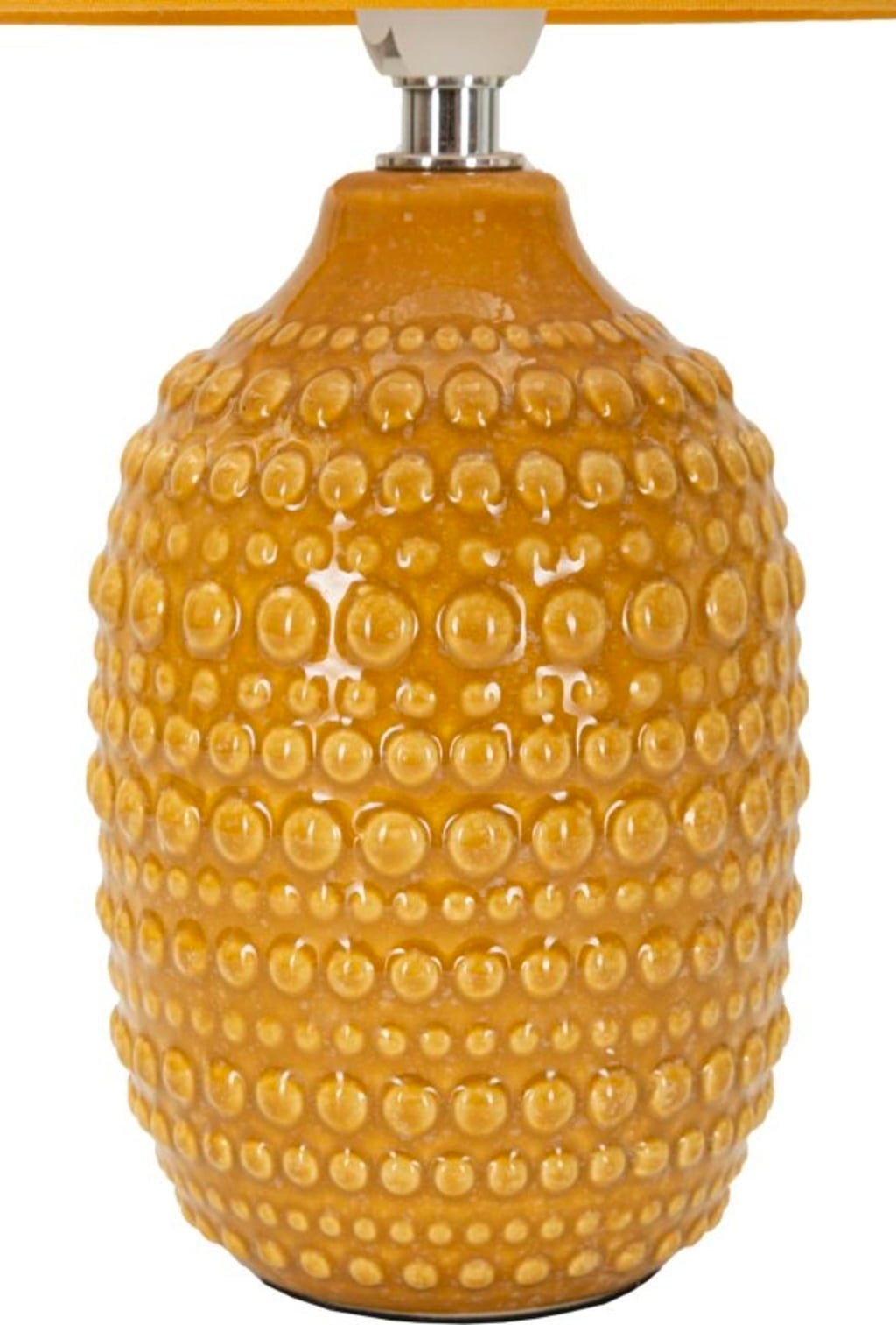 Apportez une touche d'élégance moderne à votre chambre à coucher avec cette lampe de chevet stylée. Le pied de lampe, d'un ocre chaleureux, se distingue par son relief unique et tactile, composé de points en saillie : un design moderne qui confère immédiatement de la profondeur à votre intérieur.